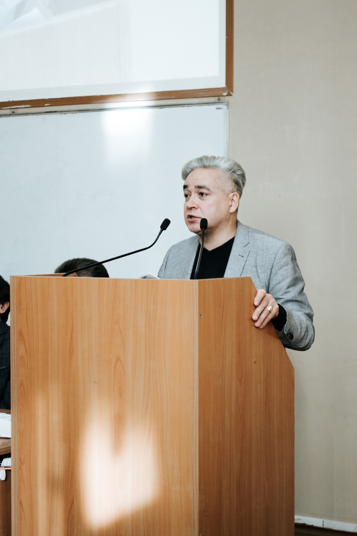 Открылась конференция пленарным заседанием, модератором которого выступила директор Института исторического, правового и социально-гуманитарного образования Башгоспедуниверситета Оксана Шамигулова. Участников приветствовал первый проректор по стратегическому развитию Акмуллинского университета Алмаз Мустаев. От лица руководства вуза они поздравил Владимира Михайловича Антонова с юбилеем и вручил ему благодарственное письмо.
