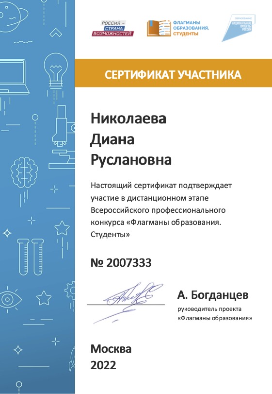 Определены полуфиналисты Всероссийского профессионального конкурса «Флагманы образования. Студенты» президентской платформы «Россия – страна возможностей».