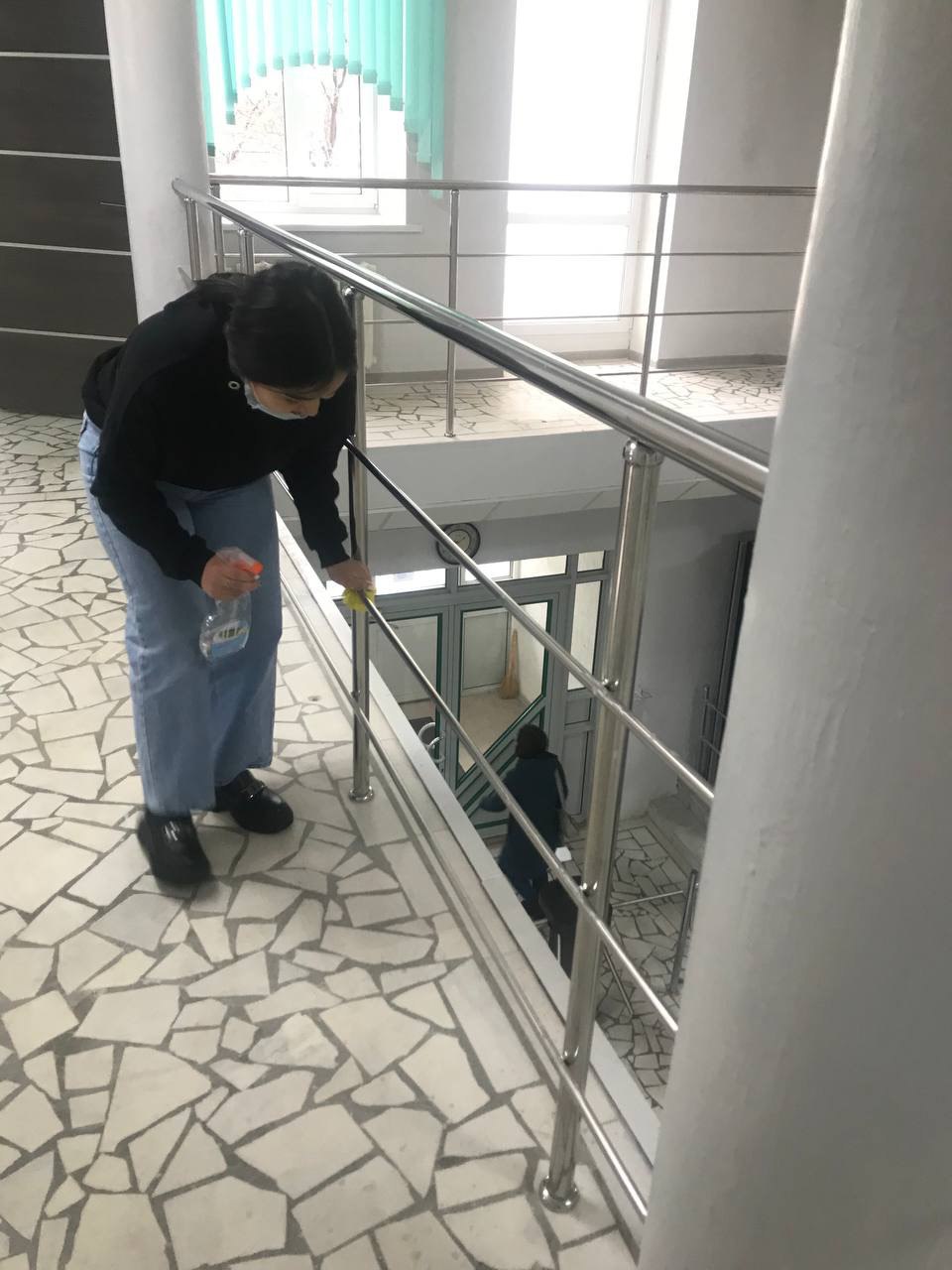 Вся территория была поделена на участки, которые были распределены между группами. Все вместе дружно наводили порядок как вокруг, так и внутри института.