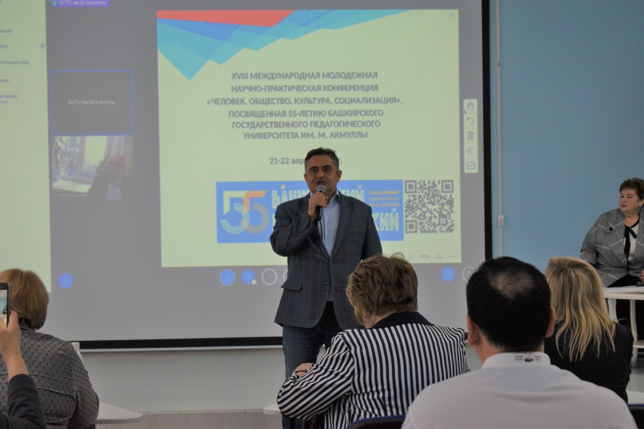 21-22 апреля 2022 г. в Башкирском государственном педагогическом университете им. М. Акмуллы прошла XVIII Международная молодежная научно-практическая конференция «Человек. Общество. Культура. Социализация». В этом году она была посвящена 55-летию Акмуллинского университета. Программа конференции была рассчитана на два дня.