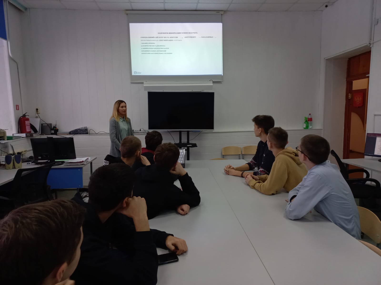 В ГБПОУ Кушнаренковский многопрофильный профессиональный колледж имени Д.Б. Мурзина 15 ноября 2022 прошла профориентационная встреча со студентами 4 курса специальности "Графический дизайнер". Студент 4 курса профиля "Экономика и управление" Сафина Гульгена в рамках прохождения практики рассказывала об основных направлениях обучения, консультировала обучающихся, отвечала на вопросы. Студенты были ознакомлены с направлением подготовки ИИПСГО 44.03.04 Профессиональное обучение, направленность (профиль) "Экономика и управление". Их интересовало наличие бюджетных мест на очной и заочной формах обучения, стоимость обучения, возможность получения льгот при поступлении, предоставление мест в общежитии и условия проживания.