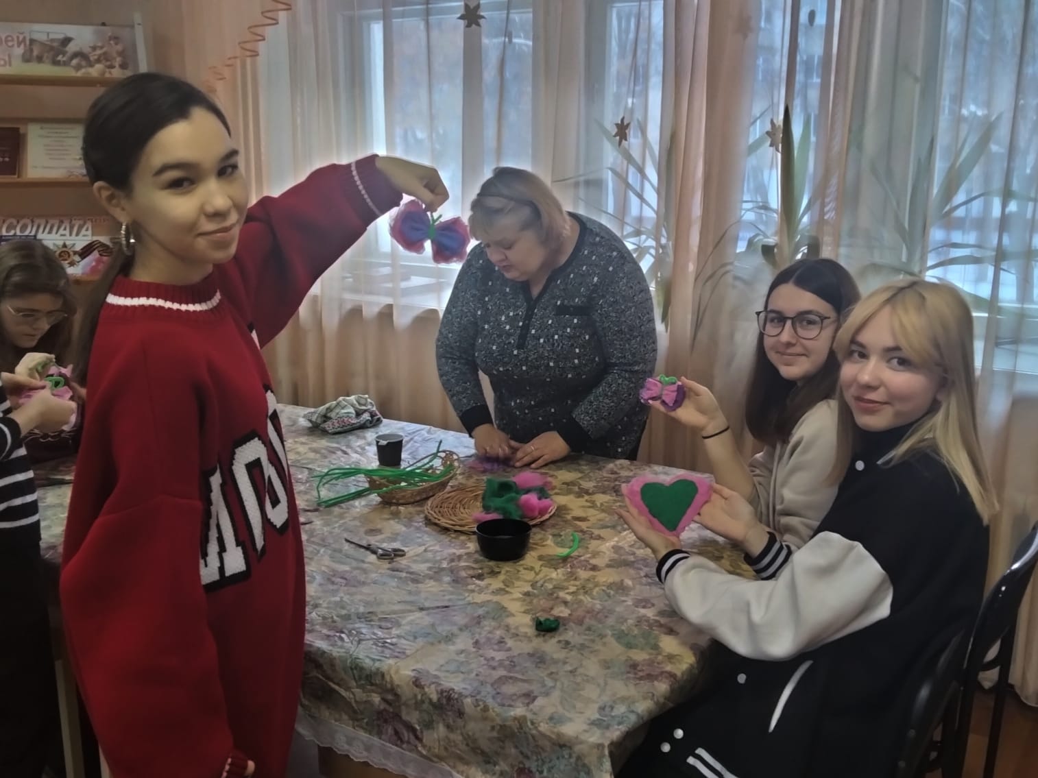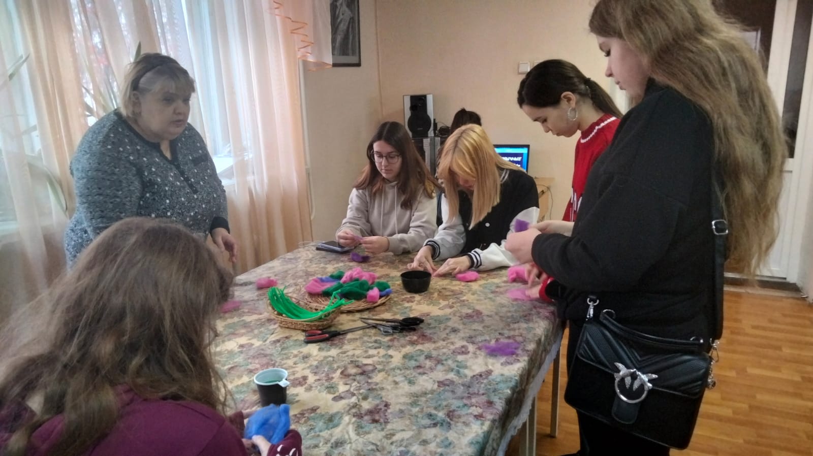 В следующей части программы студенты стали участниками мастер-класса, посвященного технике валяния из шерсти, и сделали бабочек.