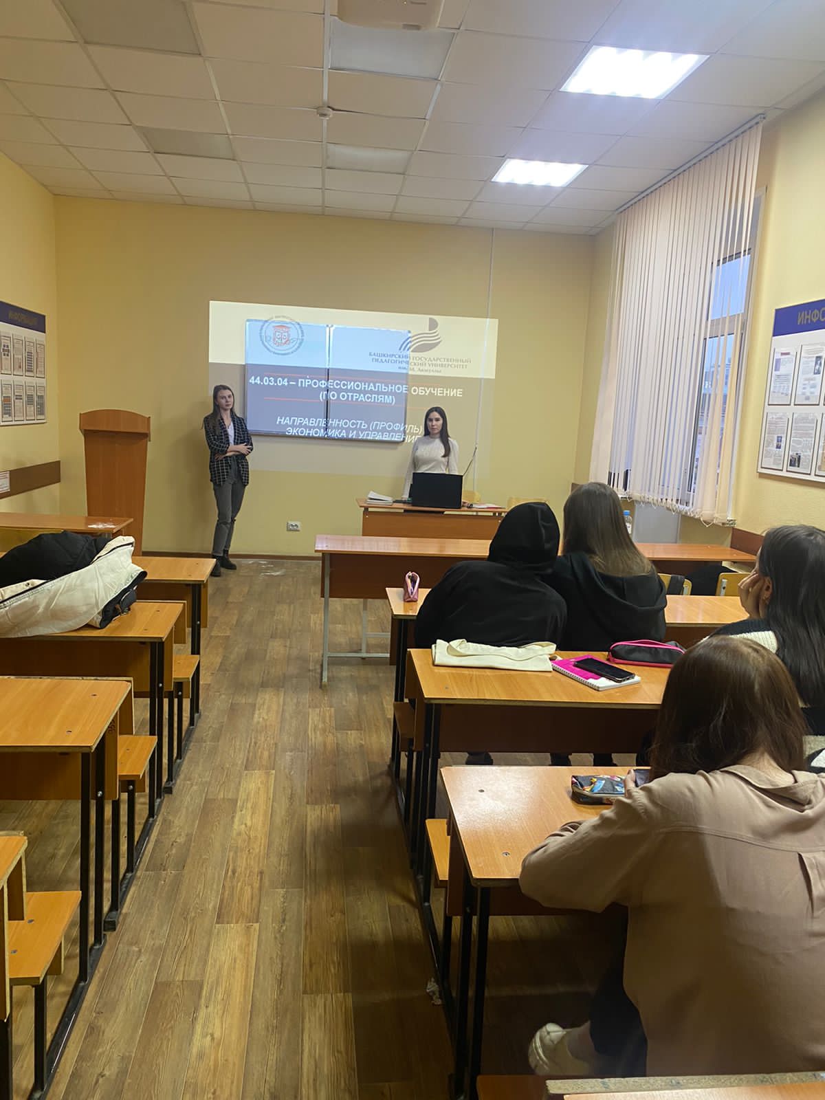 На базе Башкирского кооперативного техникума состоялась встреча студентов Акмуллинского университета профиля «Экономика и управление» Мифтаховой Альбины и Павлюкович Ангелины с обучающимися. В рамках встречи студенты колледжа получили информацию о специфике обучения в БГПУ им. М. Акмуллы, об образовательных программах Института исторического, правового и социально-гуманитарного образования. Отдельное внимание было уделено профилю «Экономика и управление». Участники встречи побеседовали об истории ВУЗа, о его факультетах, выделили положительные моменты обучения в университете и значение его существования в нашей Республике.