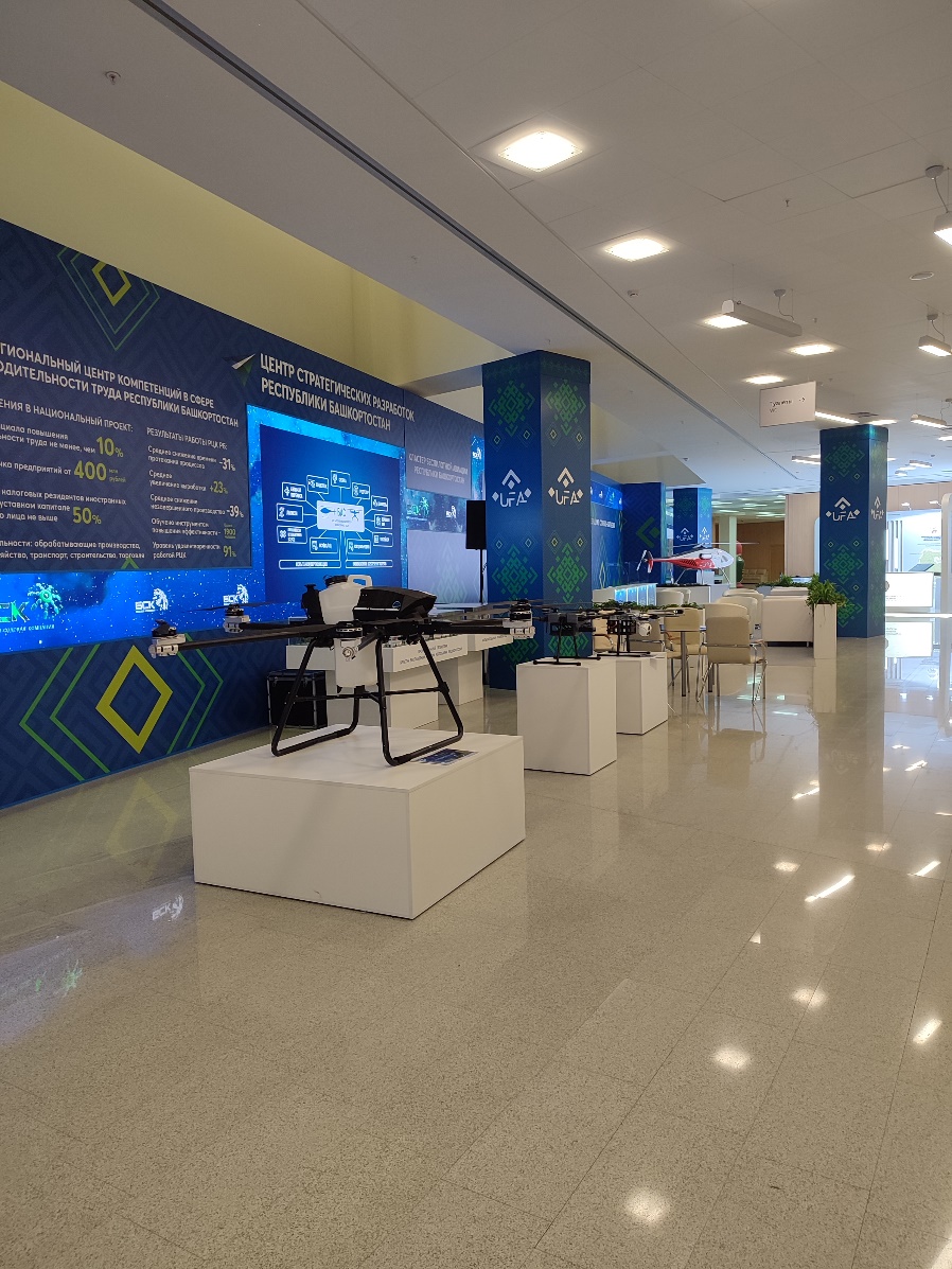Студенты ознакомились со стендами Торгово-промышленной палаты Республики Башкортостан, где представлены династии предпринимателей Уфимской губернии, и продемонстрирована работа Центра поддержки семейного предпринимательства Республики Башкортостан на современном этапе. На стенде Центра стратегических разработок Республики Башкортостан, студенты ознакомились с опытными образцами летательных аппаратов малой авиации: квардкоптерами, беспилотными летательными аппаратами.