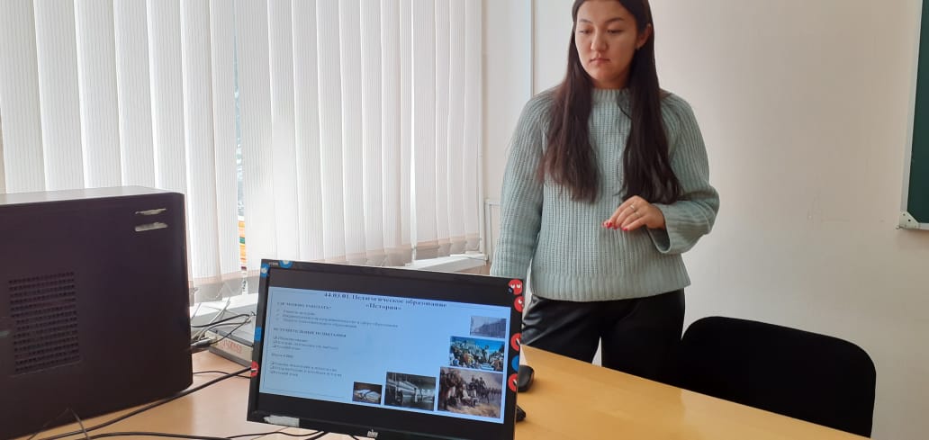 27 октября 2023 года в ГБПОУ «Уфимский профессиональный колледж имени героя советского союза Султана Бикеева» студенты 4 курса (Рафикова Аделина, Хужина Жасмин, Чанышева Айсылу и Шайхетдинова Алия) провели профориентационное мероприятие. Обучающиеся колледжа (группы ГД-9-2023 и ПД-9-2020) узнали о направлениях подготовки Института исторического, правового и социально-гуманитарного образования. Студенты Акмуллинского университета рассказали об университет в целом, об Институте исторического, правового и социально-гуманитарного образования. Особый интерес вызвали специальности и правила поступления в вуз в 2024 г.