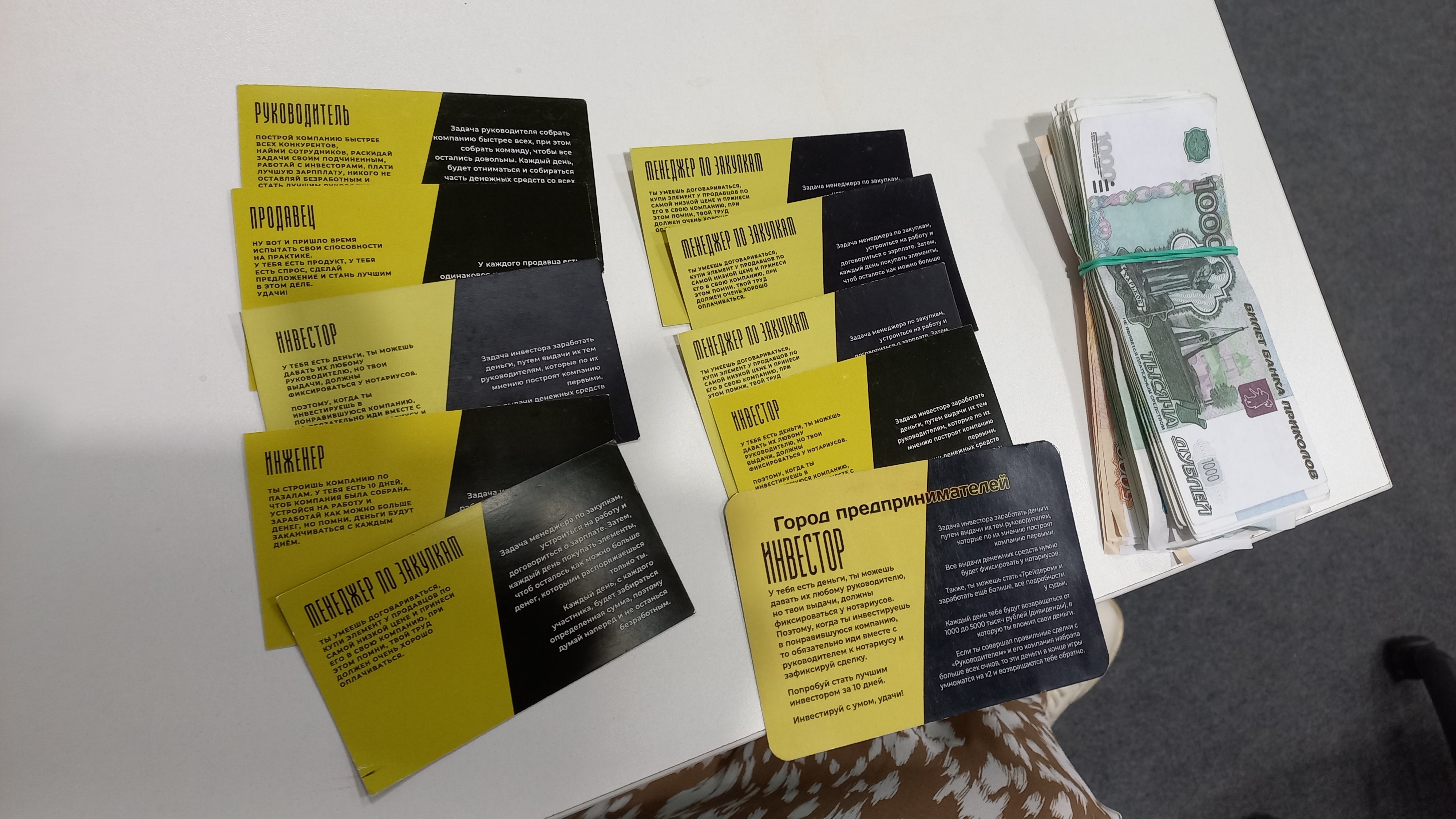 Главным преимуществом считается полное погружение в бизнес-среду в игровой форме. За три часа мощного интерактива у участников была возможность примерить на себя различные роли от топ-менеджеров (руководителя предприятия) или советника до продавца или бухгалтера. Участники игры получали роли в зависимости от того, кем они себя видели -командным игроком или индивидуальным. А потому были и нотариусы, и инвесторы, в общем, целый город предпринимателей, как и было заявлено на афише мероприятия. И в условиях условного времени игры (10 дней), участники открывали и развивали свои компании в формате жесткой конкуренции со стороны других участников.