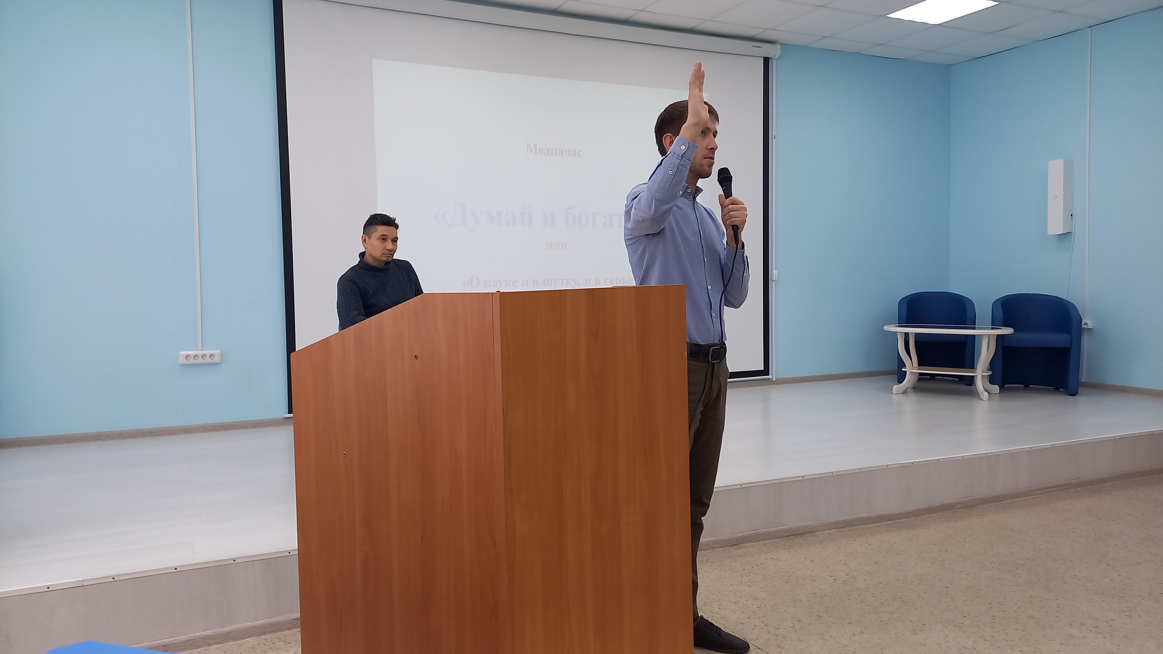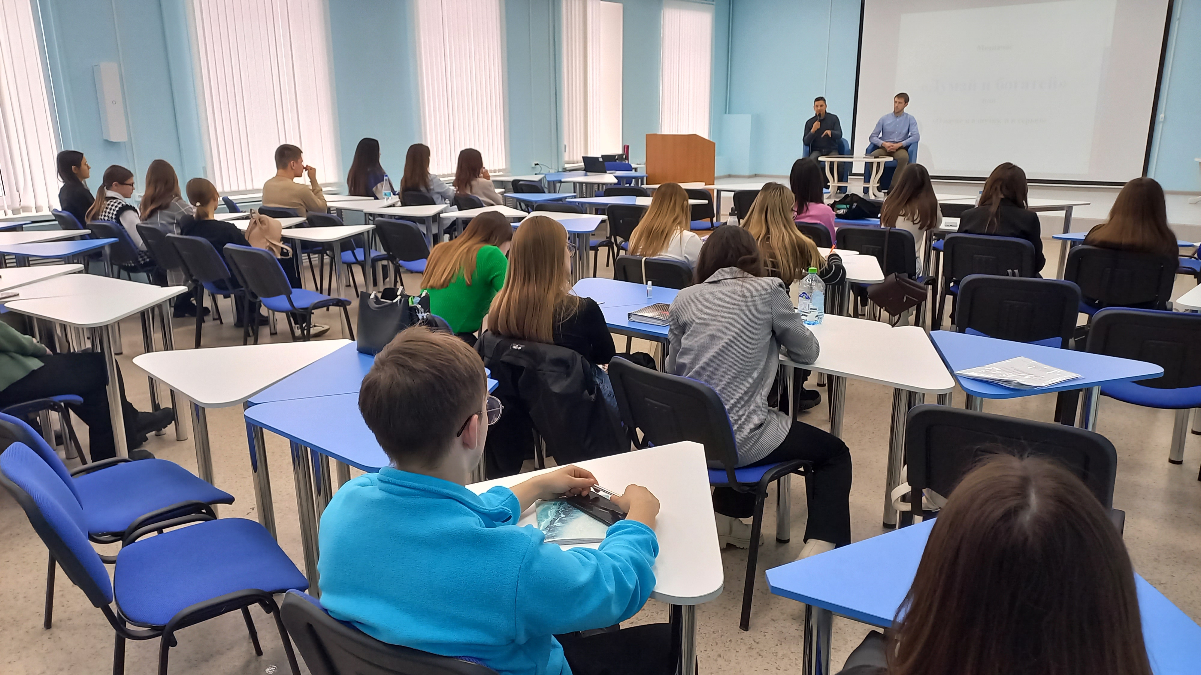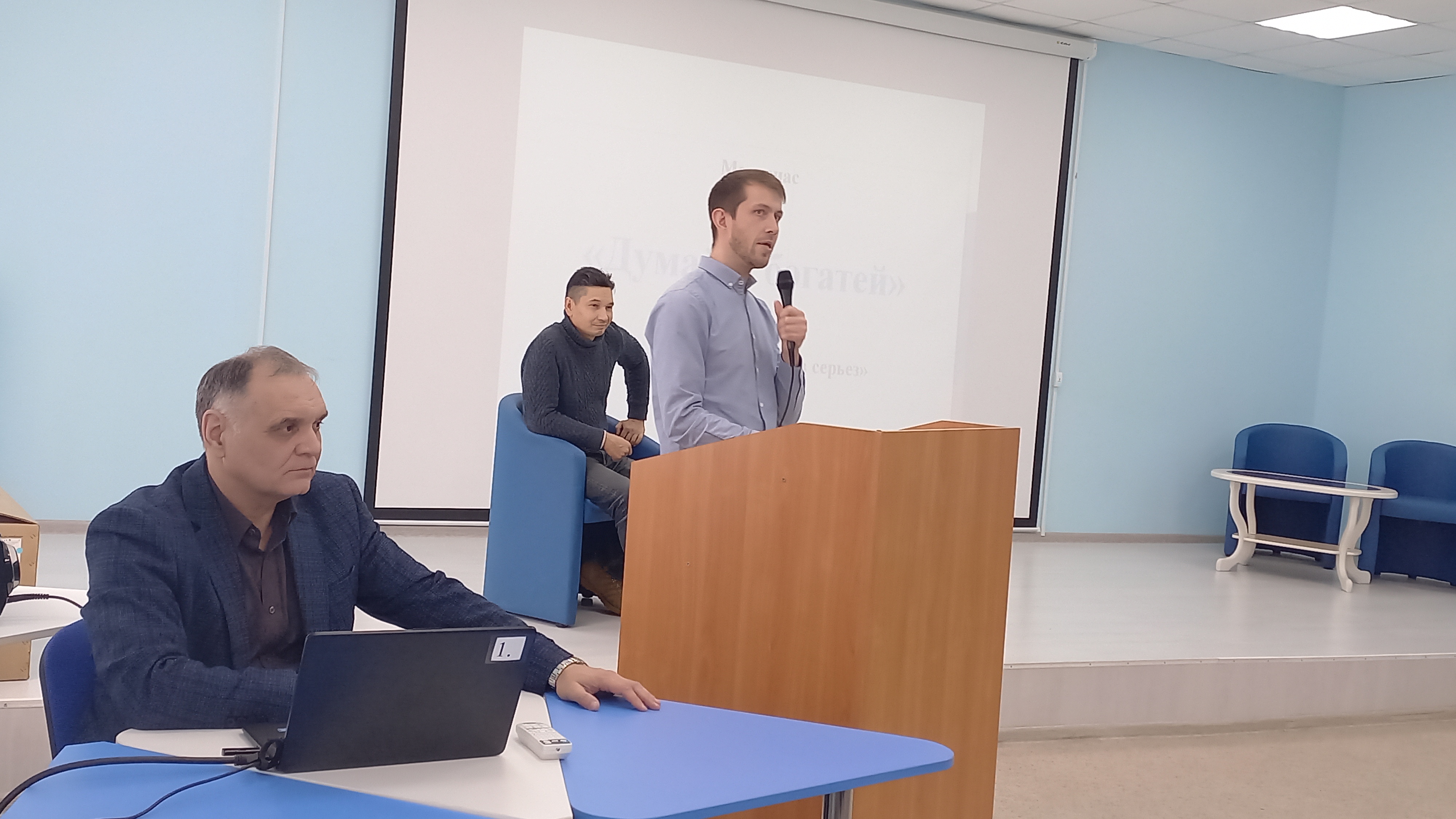 Медиачас «Думай и богатей» состоялся 2 февраля 2024 года в 14 часа в ауд.5. На встрече с организаторами бизнес-игры Булатом Арсланбаевым и Акрамом Бекмухамедовым принимали участие студенты 4-го курса ПОМХЭК-51-19, 3-го курса БИДРА-31-21, 4-го курса ПРОПД-41-20 и 1-го курса ПРОЭК-11-23. Вел медиачас профессор кафедры культурологии и социально-экономических дисциплин Лутфуллин Ю.Р.