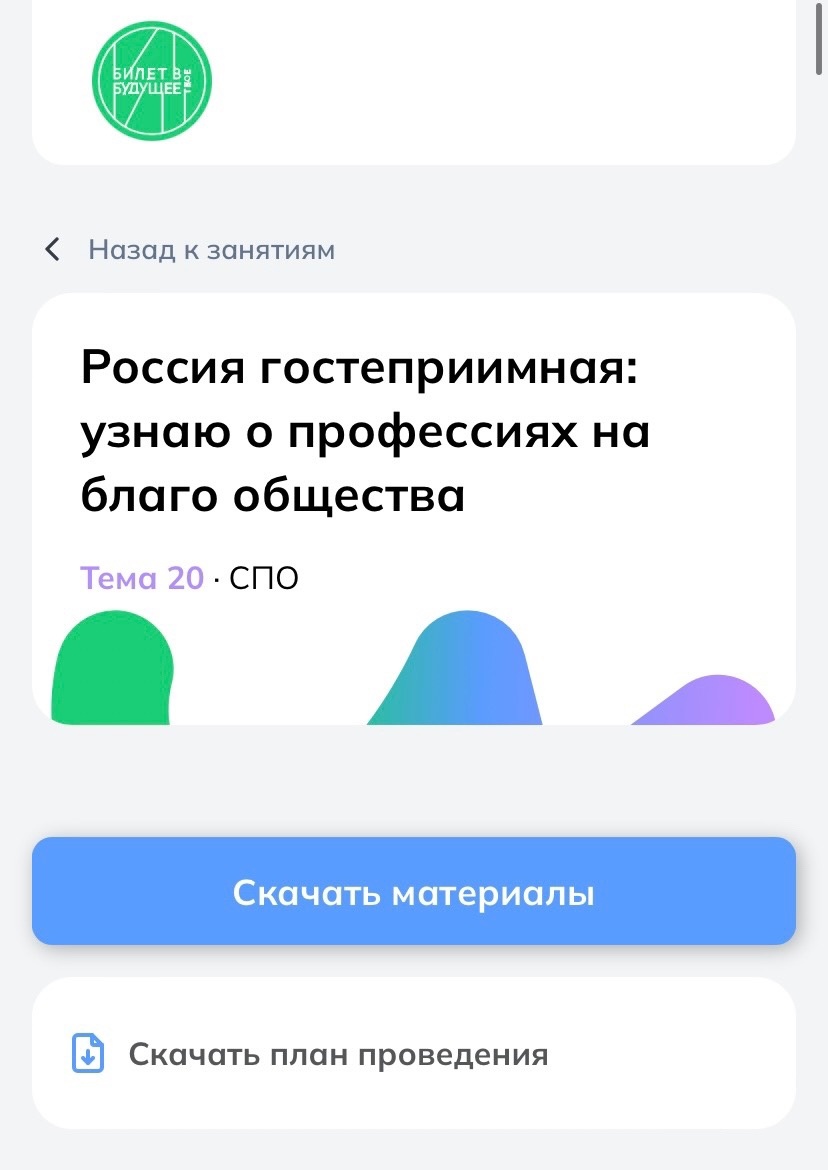 Темой второго занятия стала: «Россия гостеприимная: узнаю о профессиях на благо общества». В рамках этого занятия рассматриваются основные виды туризма, реализуемые в нашей стране.