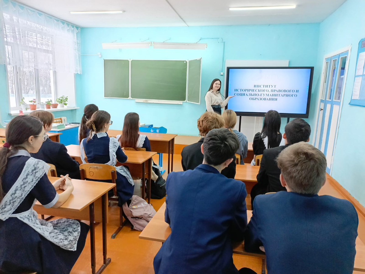 22 февраля студентка 4 курса профиля «Мировая художественная культура и экономика» Института исторического, правового и социально-гуманитарного образования БГПУ им. М. Акмуллы организовала в МОБУ СОШ с.Старокуручево презентацию о главном педагогическом вузе республики для учащихся 10-11 классов. Гиззатова Зухра рассказала ученикам о направлениях и специальностях в университете, содержании обучения, как организован учебный процесс, какие перспективы открываются перед выпускниками этого учебного заведения. Она посоветовала школьникам работать над качеством приобретаемых знаний, принимать активное участие в проектной деятельности, в научно-практических конференциях, уделять большое внимание изучению всех школьных дисциплин.