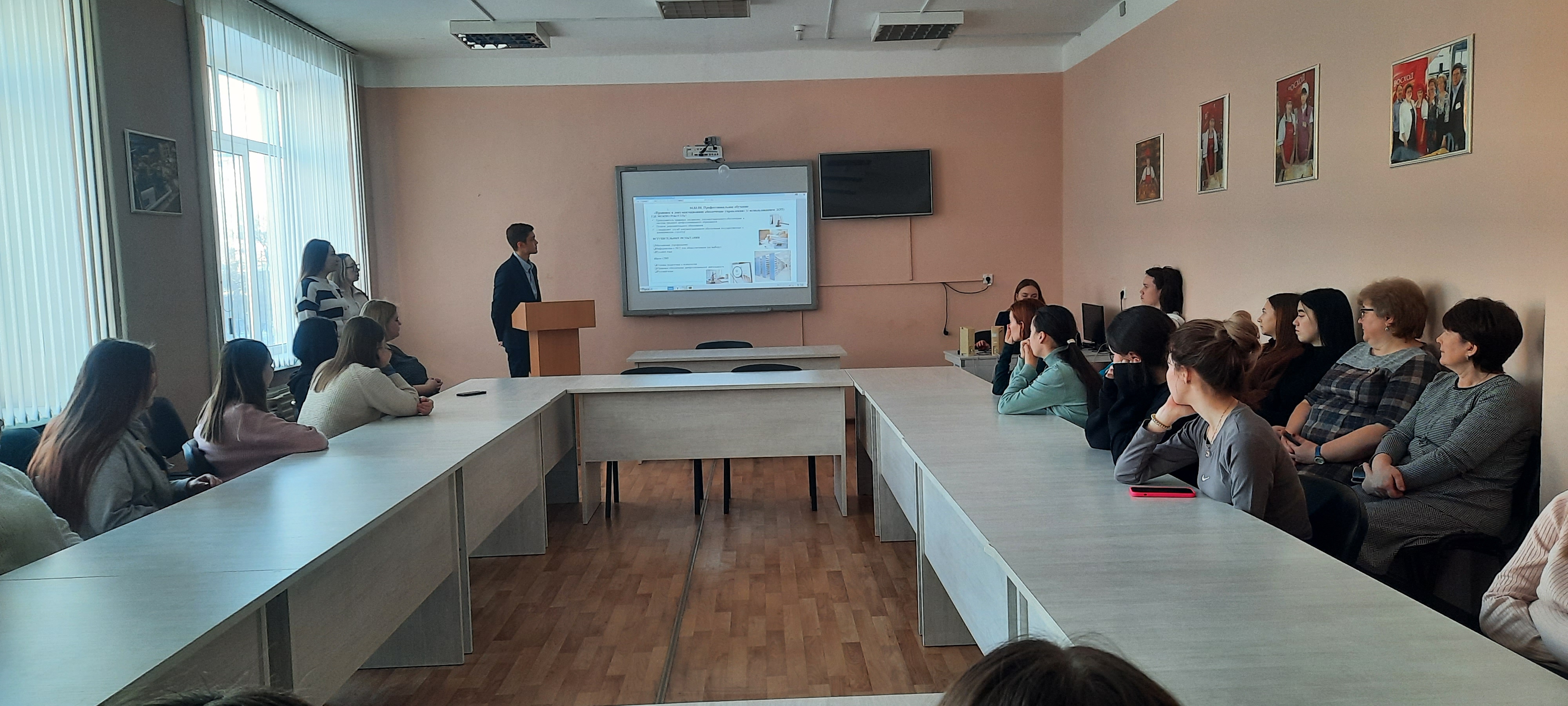 Далее наши студенты предоставили профориентационную информацию об Институте исторического, правового и социального-гуманитарного образования. Подробно было рассказано о всех направлениях и профилях обучения в Институте, условиях и правилах поступления, а также активной жизни студентов.