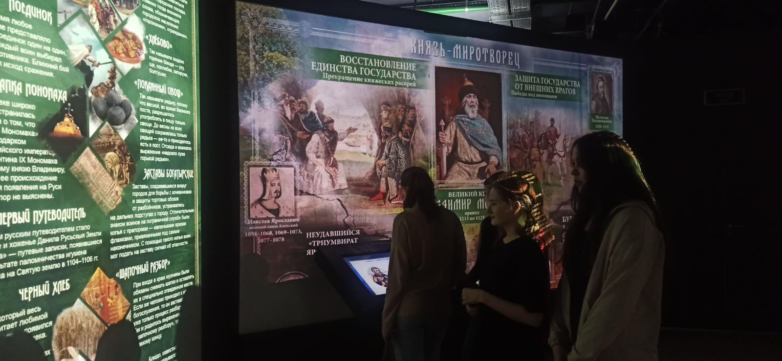 Экскурсия по одной из самых больших экспозиций парка была посвящена истории становления первой русской правящей династии и возникновением государственности и тяжелейшим испытаниям, с которыми столкнулась наша страна на самых ранних этапах своего существования. Студенты при помощи современных интерактивных технологий смогли ознакомиться с историей самобытной Руси, наглядно ознакомились с бытом и жизнью наших предков на протяжении тысячелетней истории.