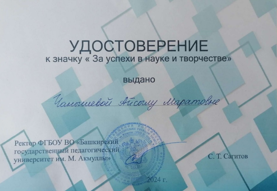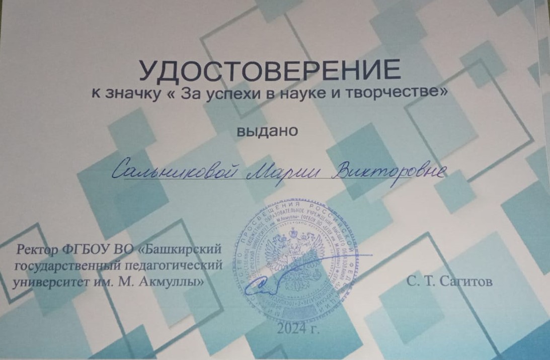 Удостоверение к значку "За успехи в науке и творчестве" получили: