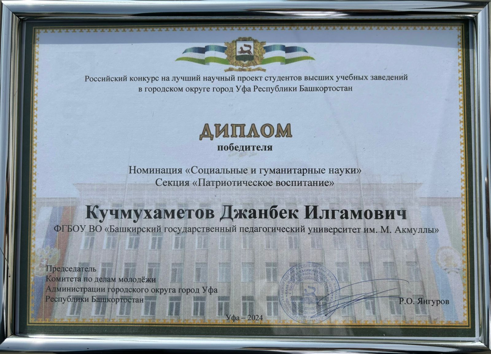 Студент Акмуллинского университета стал победителем Конкурса на лучший научный проект г.Уфы за 2024 г.