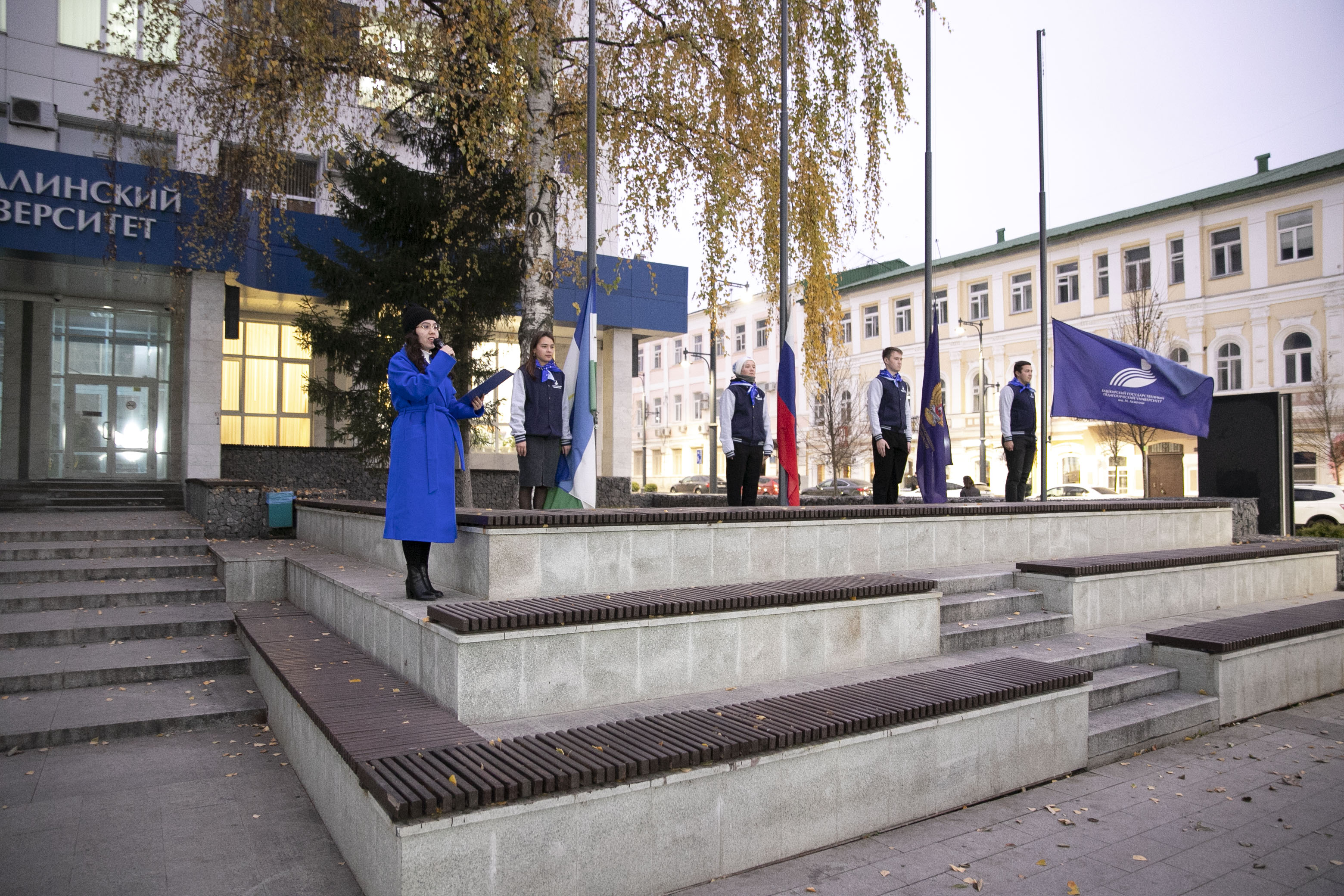 Студенты ИИПСГО подняли флаги перед Акмуллинским университетом