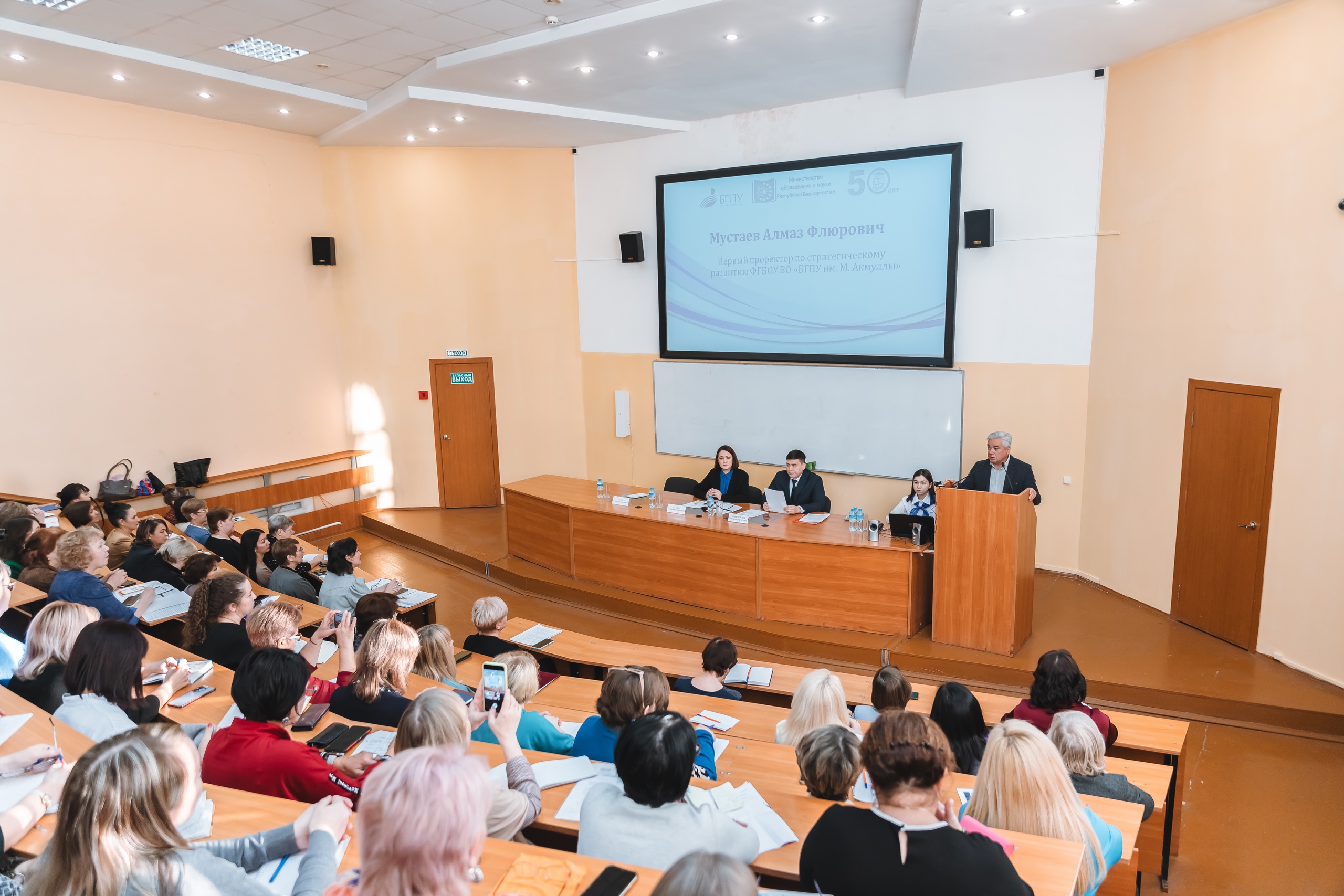 С приветственным словом в пленарном заседании выступили: начальник Управления национального образования Министерства образования и науки Республики Башкортостан Ишемгулов Мурат Нилевич; заместитель министра образования и науки Республики Башкортостан Галиева Альфия Закировна, первый проректор по стратегическому развитию Акмуллинского университета Мустаев Алмаз Флюрович.