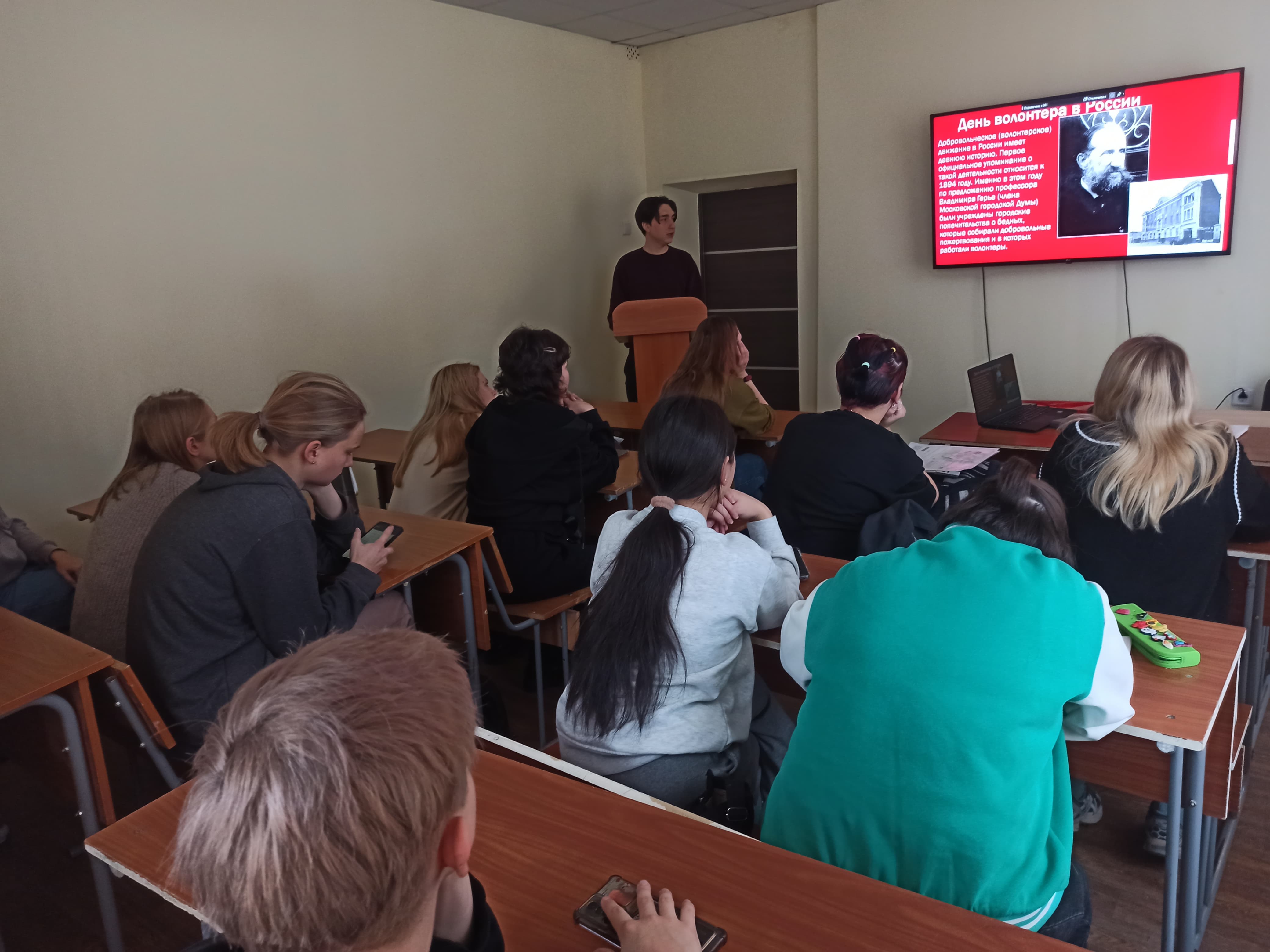 В завершении студентам было предложено поучаствовать в проектировании акции «Сделай доброе дело»: предложить инициативы по одному из направлений волонтерства.