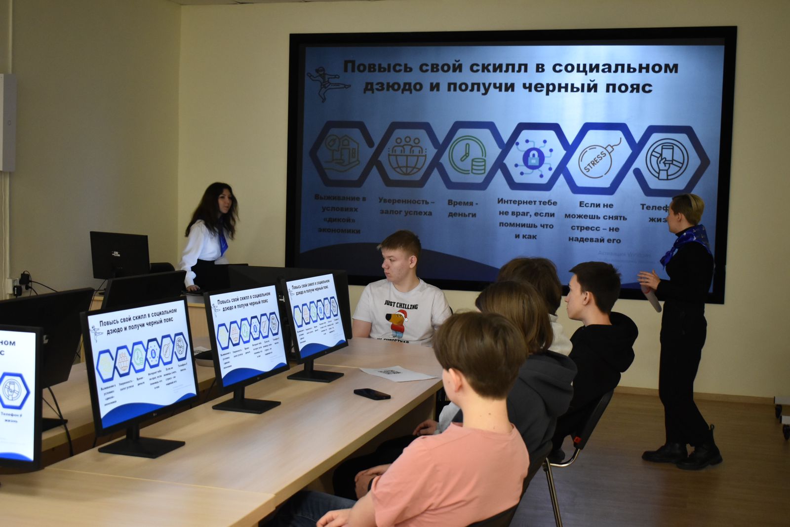 «Виртуальный музей» (представили Тимофей Баранов и Горсков Д.А.) позволил школьникам в интерактивном формате познакомиться с историко-культурным наследием региона. Интенсив "Социальное дзюдо" (провели Анастасия Сабельникова, Аделя Арслангареева, Валерия Ахмадиева) улучшил знания ребят по нескольким направлениям: «Выживание в условиях «дикой экономики», «Уверенность – залог успеха», «Время – деньги», «Интернет тебе не враг, если помнишь что и как», «Если не можешь снять стресс – не надевай его», «Телефон ≠ жизнь».