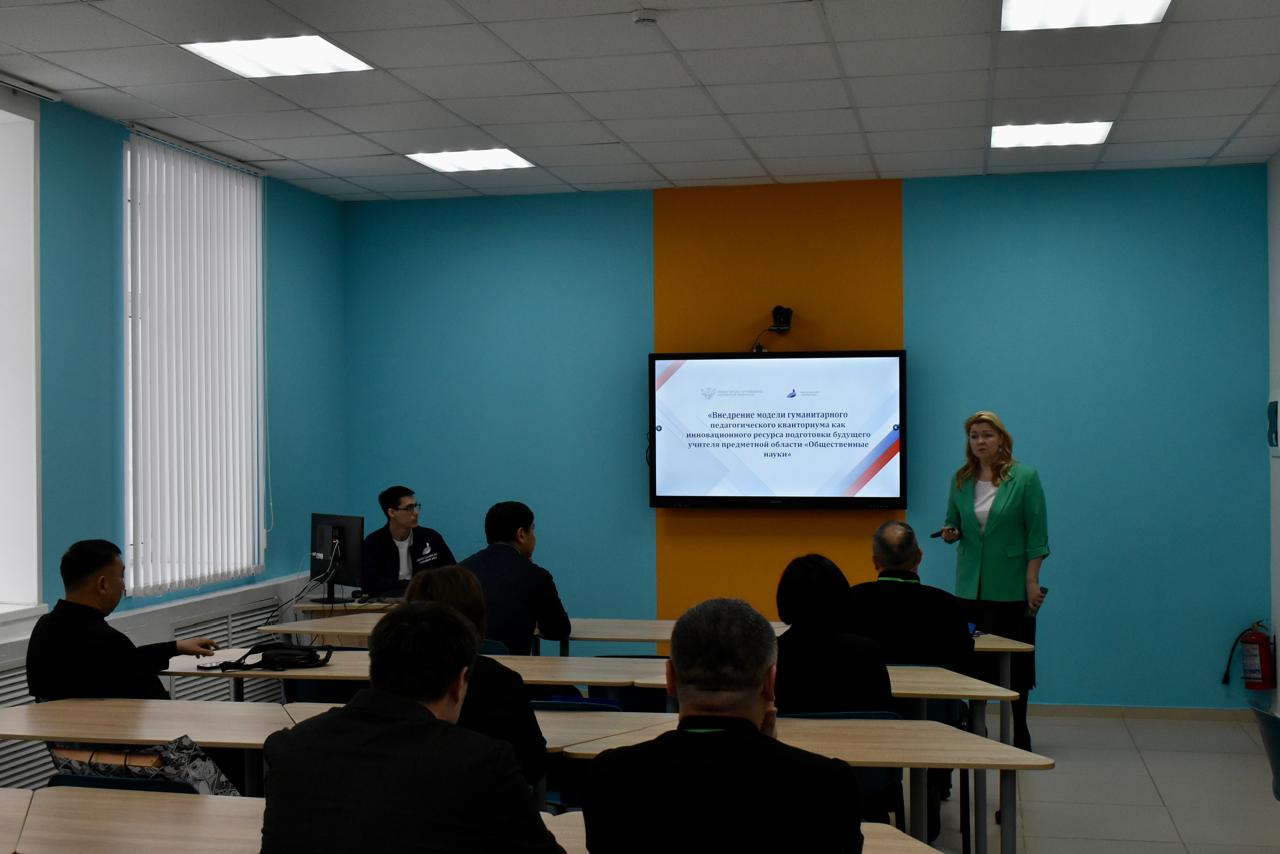 В рамках конференции «Актуальные проблемы науки и образования в условиях современных вызовов» ректоры высших учебных заведений России и Кыргызстана посетили Институт исторического, правового и социально-гуманитарного образования. Встречу делегации открыл Радик Зинатович Юлбаев – проректор по молодежной политике и международным связям. С приветственным словом к гостям выступила директор Института Оксана Алексеевна Шамигулова, Она рассказала о концепции гуманитарного кванториума как инновационной площадки формирования профессиональных компетенций у будущих педагогов в области освоения технологий гуманитарного образования, направлениях реализации проекта, особенностях организации учебного и воспитательного процесса, согласно модели.