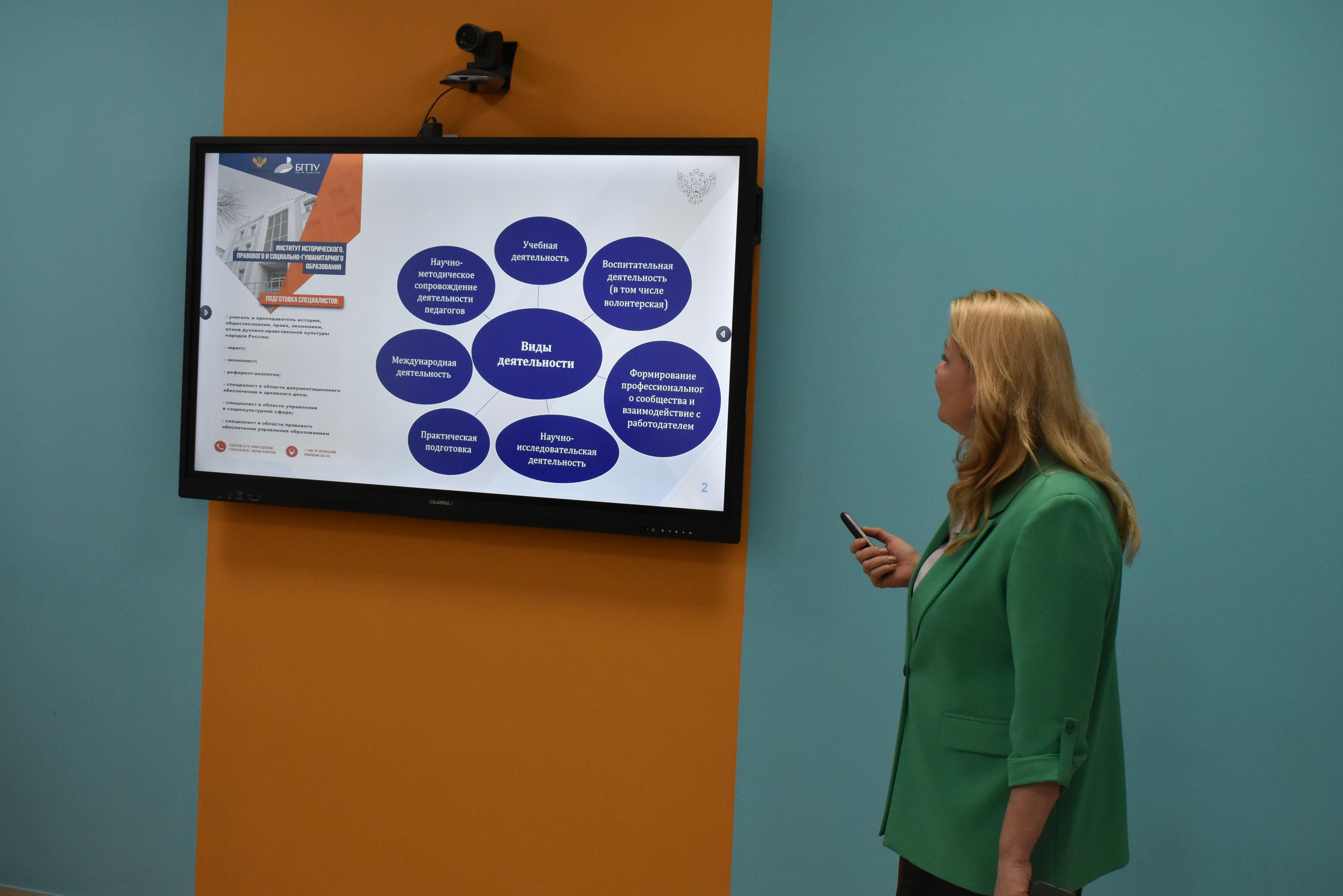 Студенческие проекты «Прогулка по Большой Казанской», «Читательский клуб», «Социальное дзюдо» презентовали заместитель директора по воспитательной работе и молодежной политике Даниил Андреевич Горсков, студентка магистратуры Алсу Кулембетова и студентка Анастасия Сабельникова. Участники делегации поблагодарили коллектив за содержательную экскурсию и выразили намерение о сотрудничестве в научно-образовательной сфере.