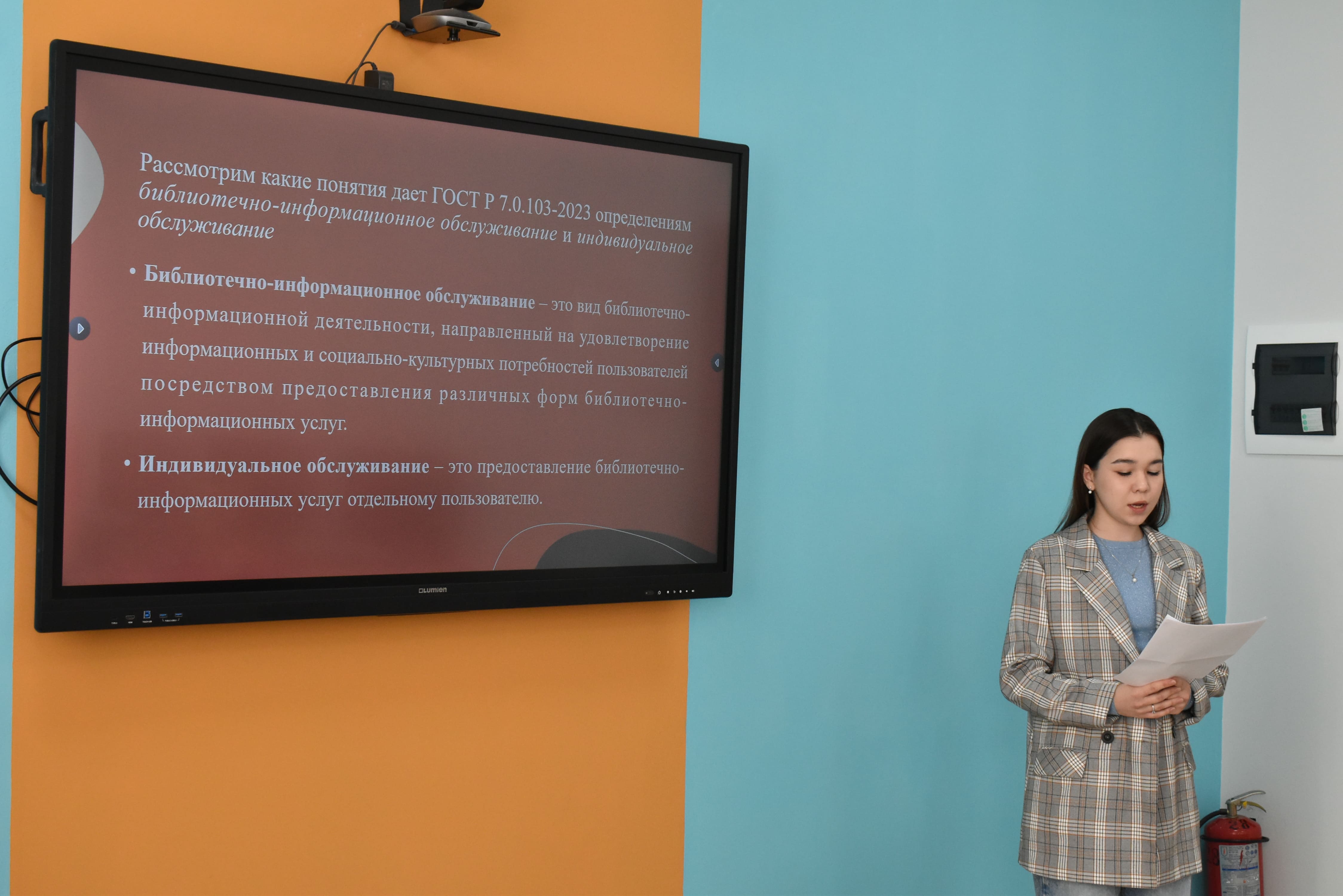 4. Кызымбаева Альбина как участница Студенческого объединения «Аналитик» рассказала о специфике индивидуального обслуживания пользователей в библиотеках.