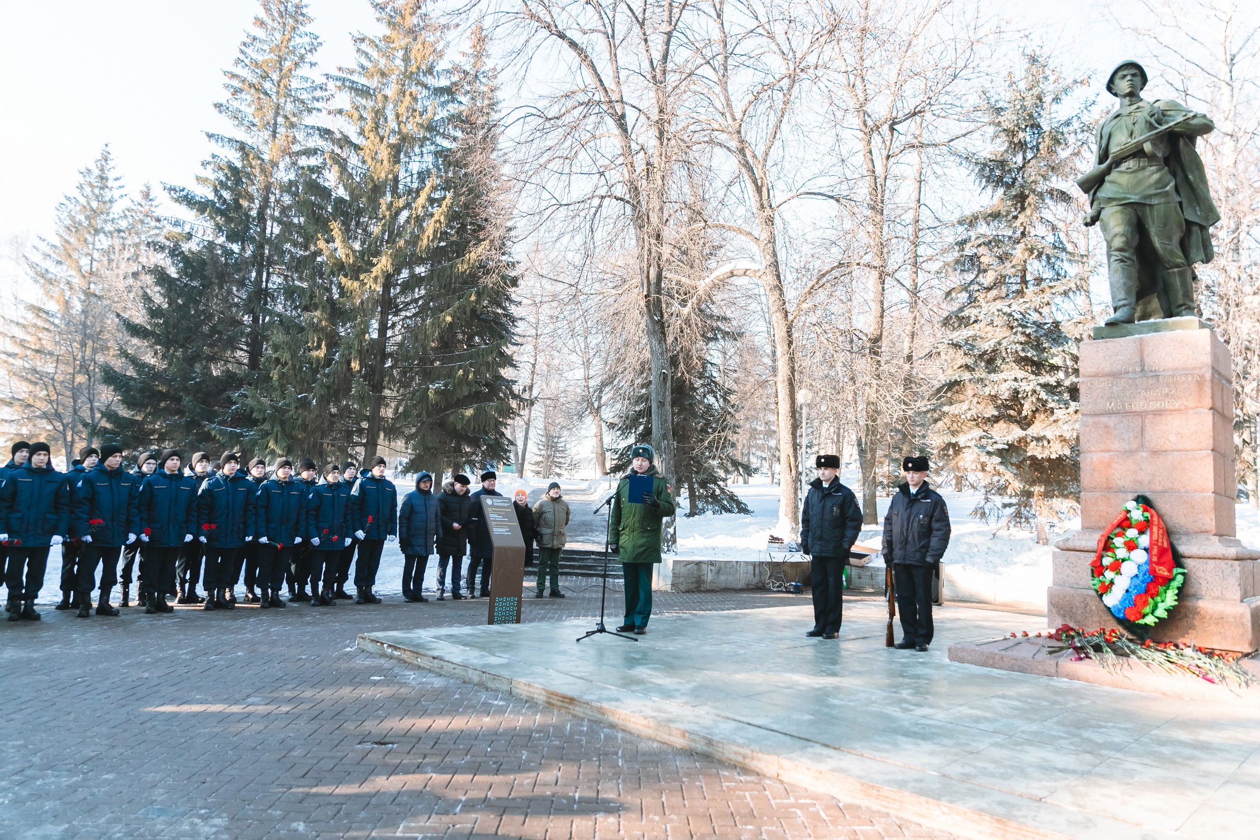 21 февраля в парке им. В.И. Ленина состоялась торжественная церемония возложения цветов к памятнику Герою Советского Союза Александру Матросову и митинг, посвященный Дню защитника Отечества. В мероприятии приняли участие студенты и сотрудники Института исторического, правового и социально-гуманитарного образования, студенты уфимских вузов, шаймуратовцы и юнармейцы школ Кировского района Уфы, ветераны, участники СВО и почетные гости.
