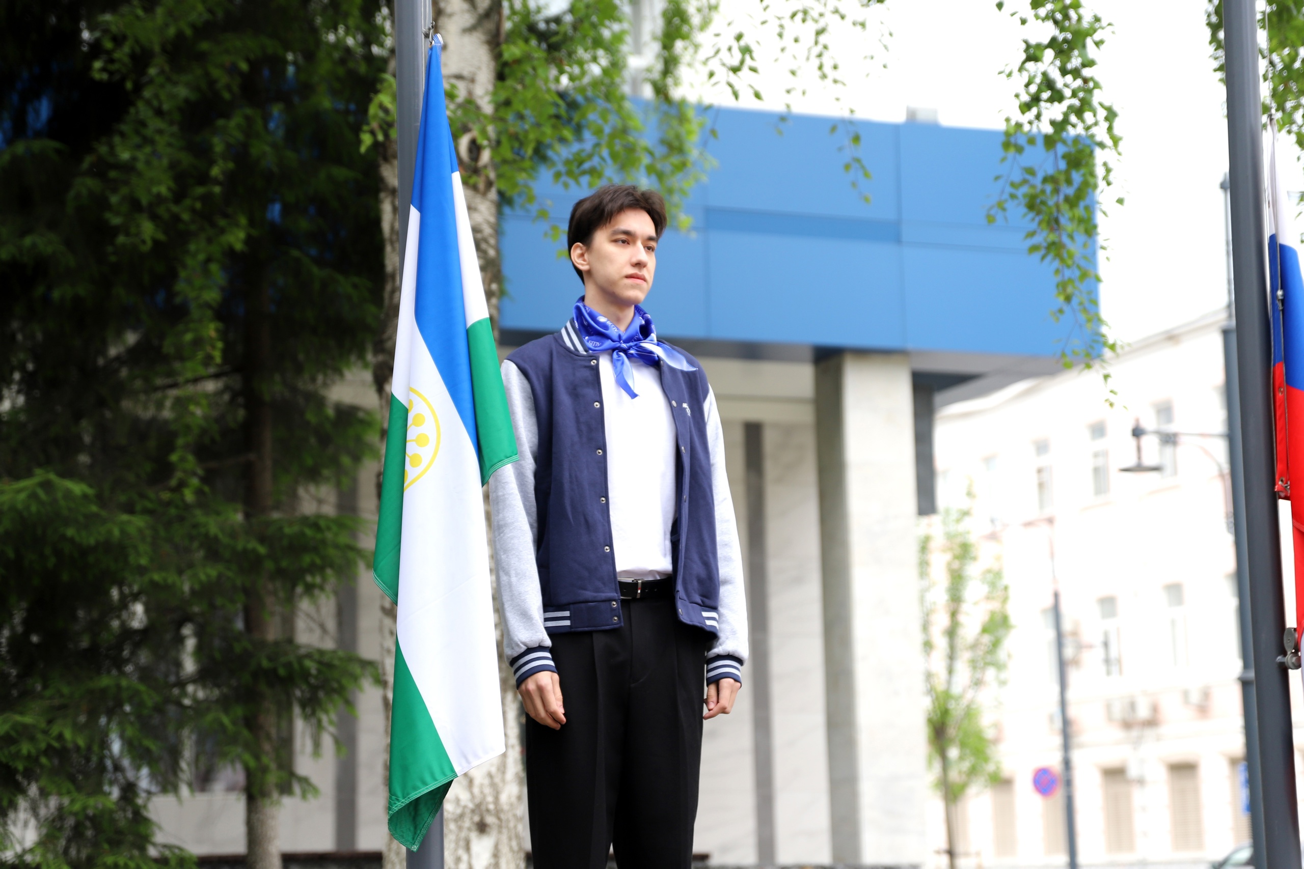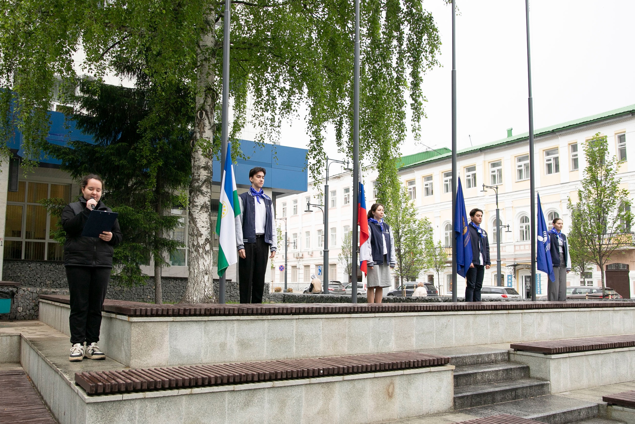 19 мая в Башкирском государственном педагогическом университете им. М. Акмуллы состоялась еженедельная торжественная церемония поднятия государственных флагов Российской Федерации, Республики Башкортостан, флагов Министерства просвещения Российской Федерации и Акмуллинского университета. В ней приняли участие студенты и преподаватели Института исторического, правового и социально-гуманитарного образования.