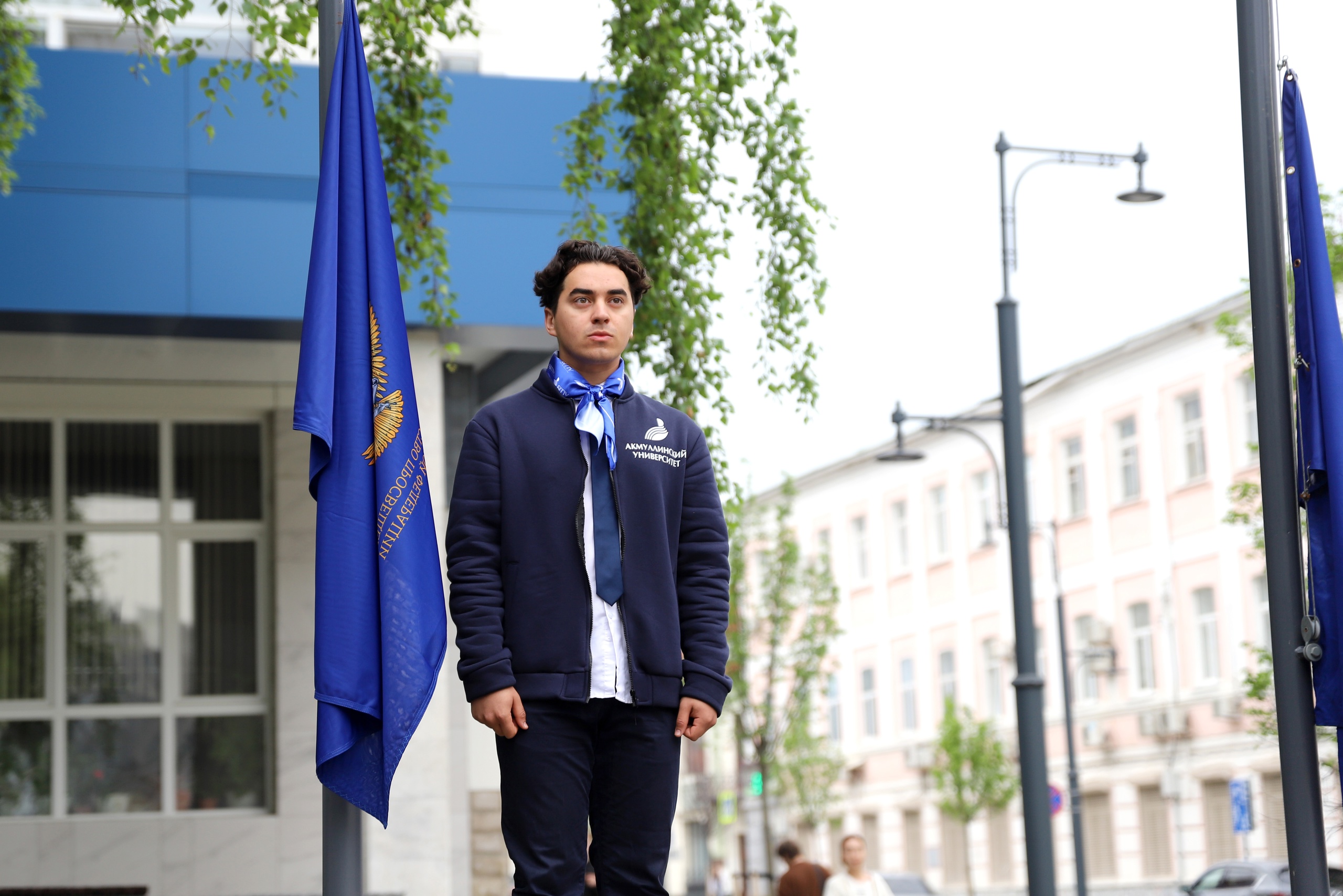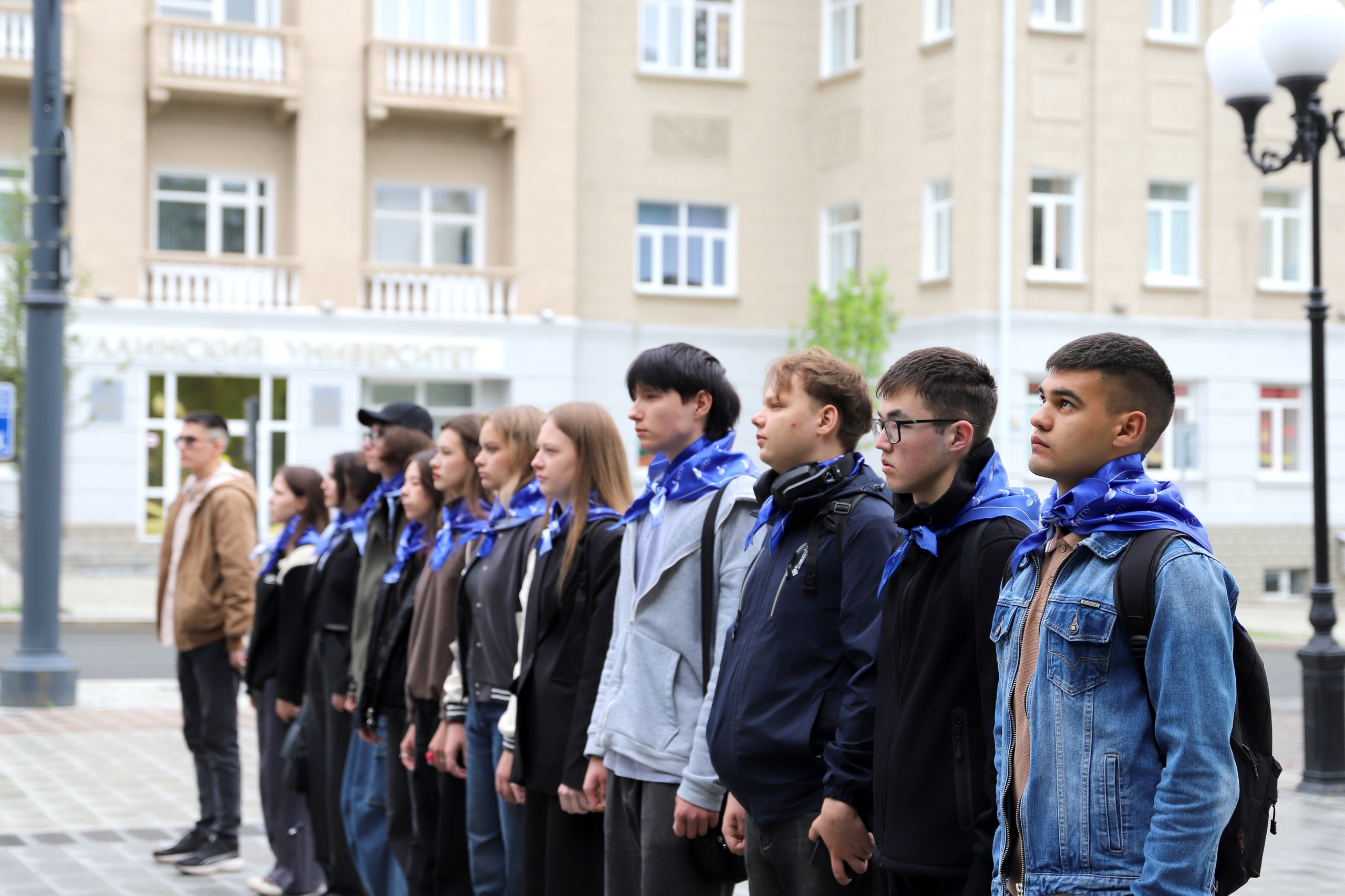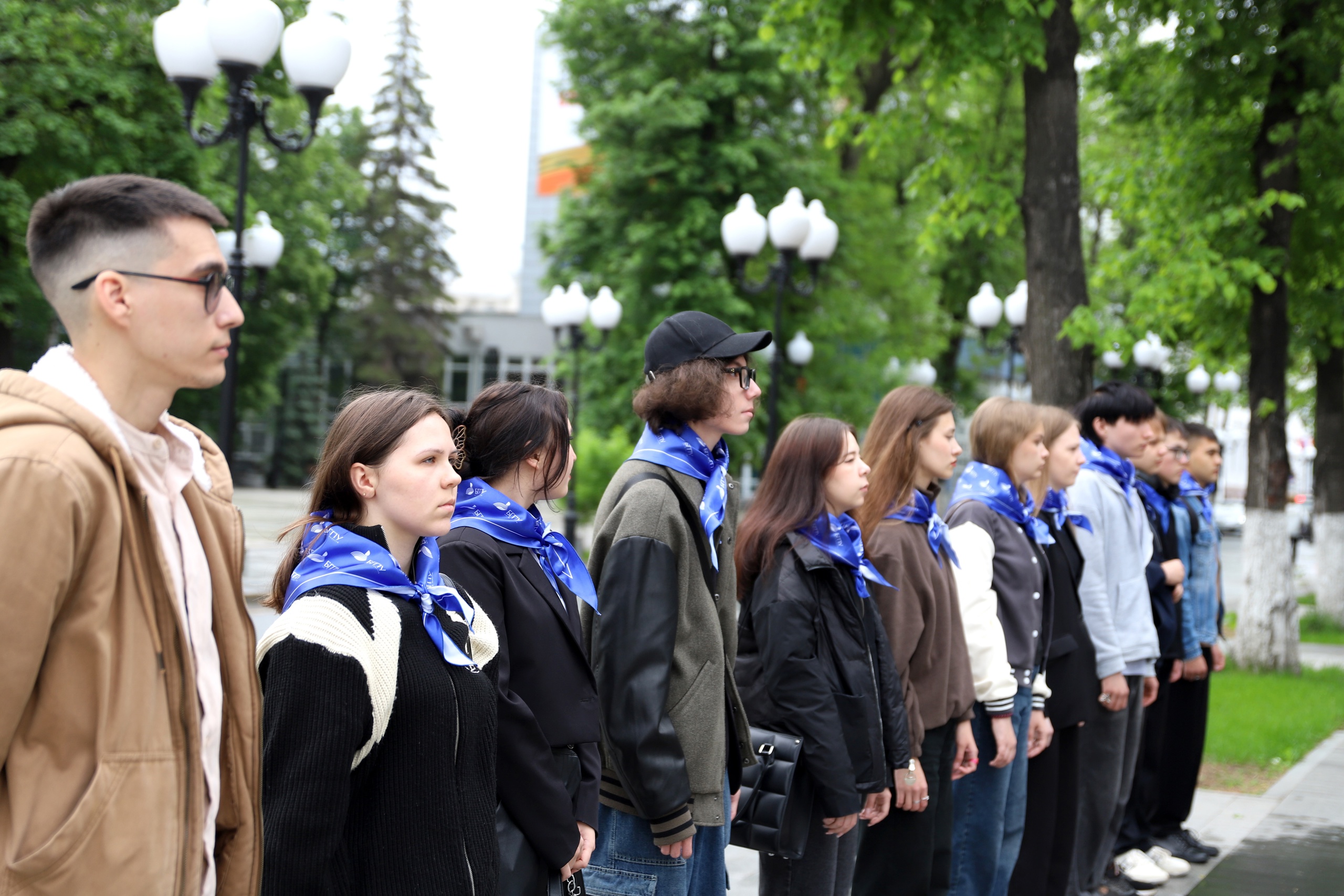 Почетное право поднять флаги на площади перед университетом получили студенты, имеющие особые достижения в общественной, культурной, научной и учебной деятельности: