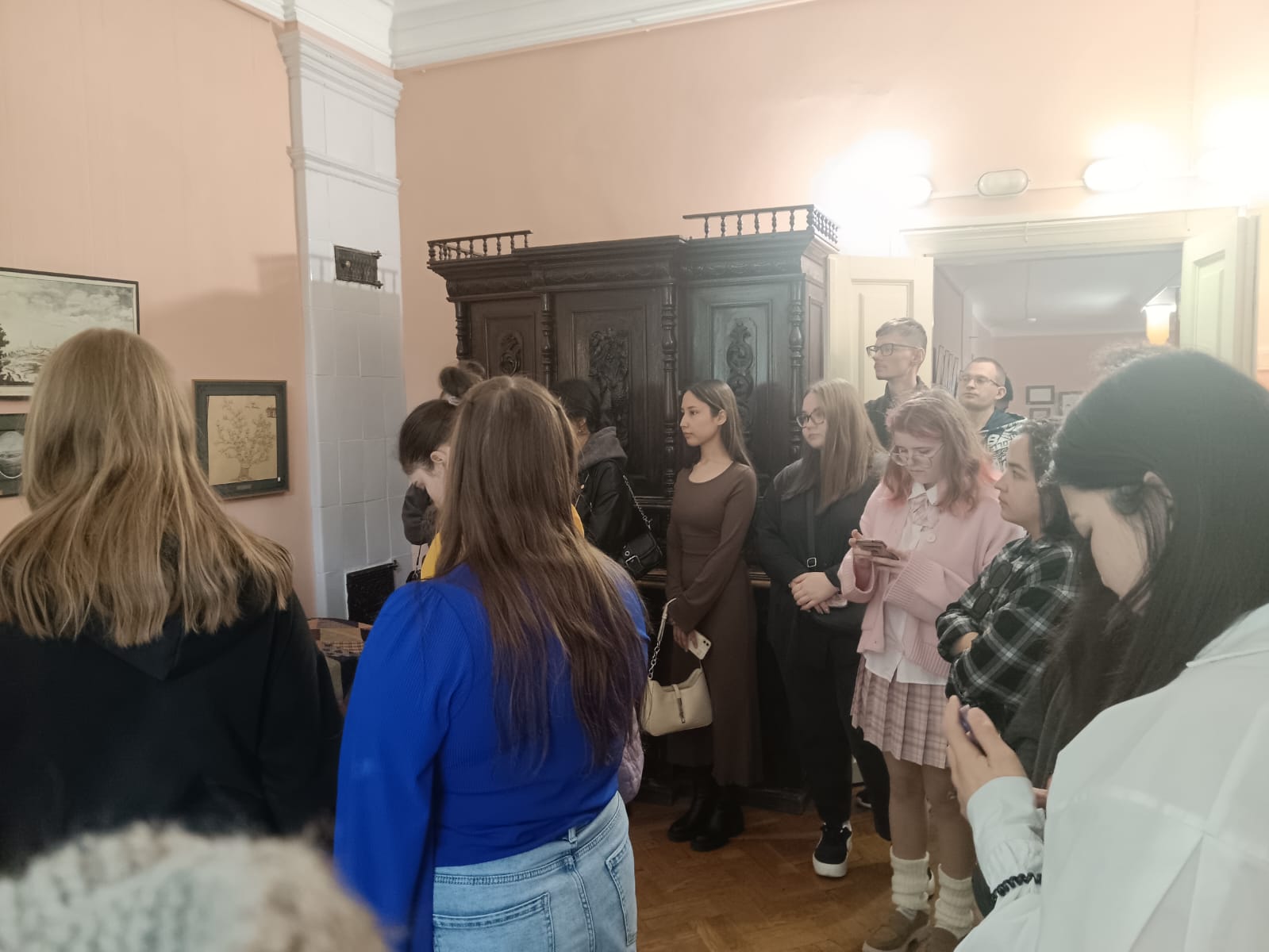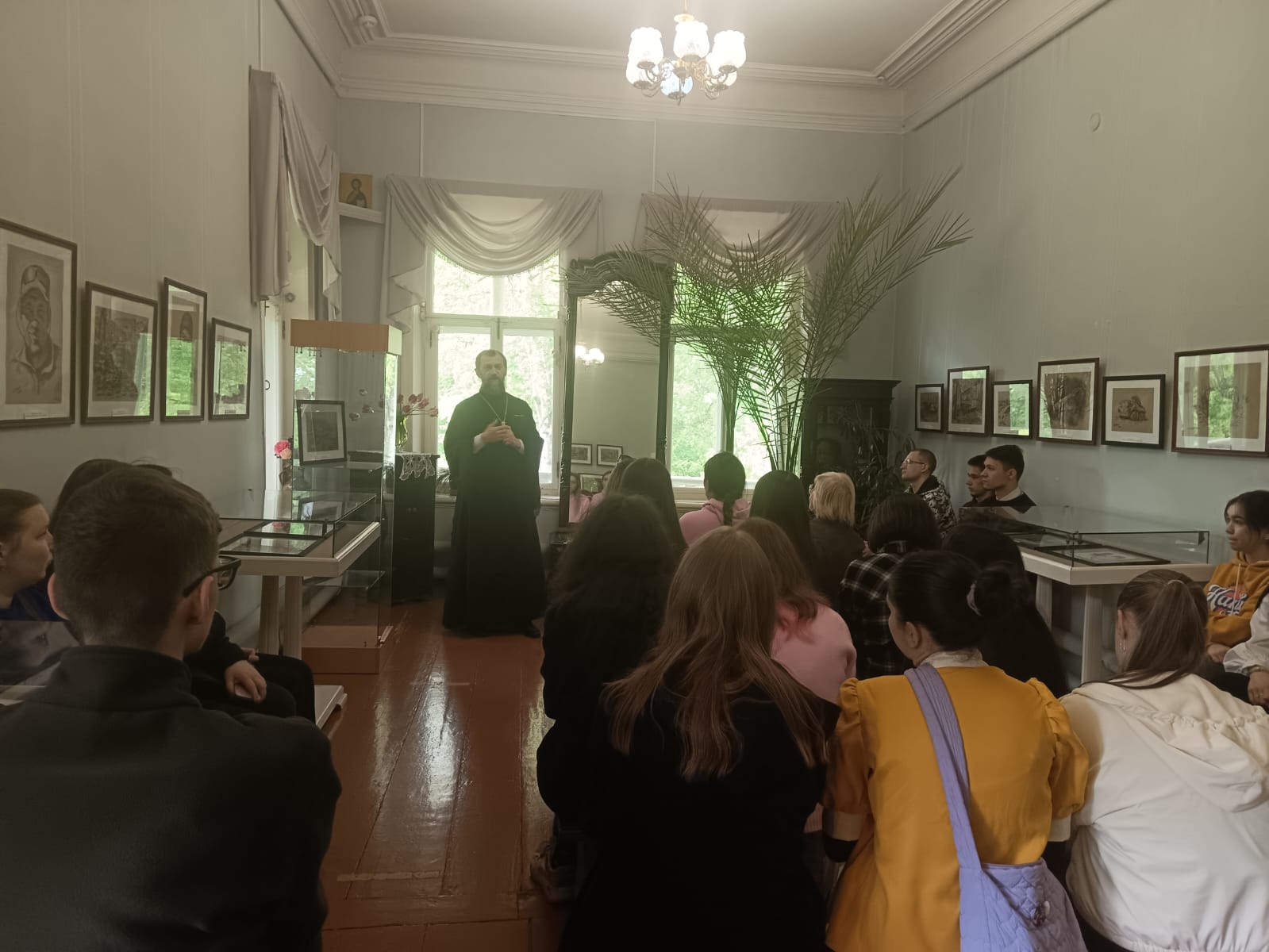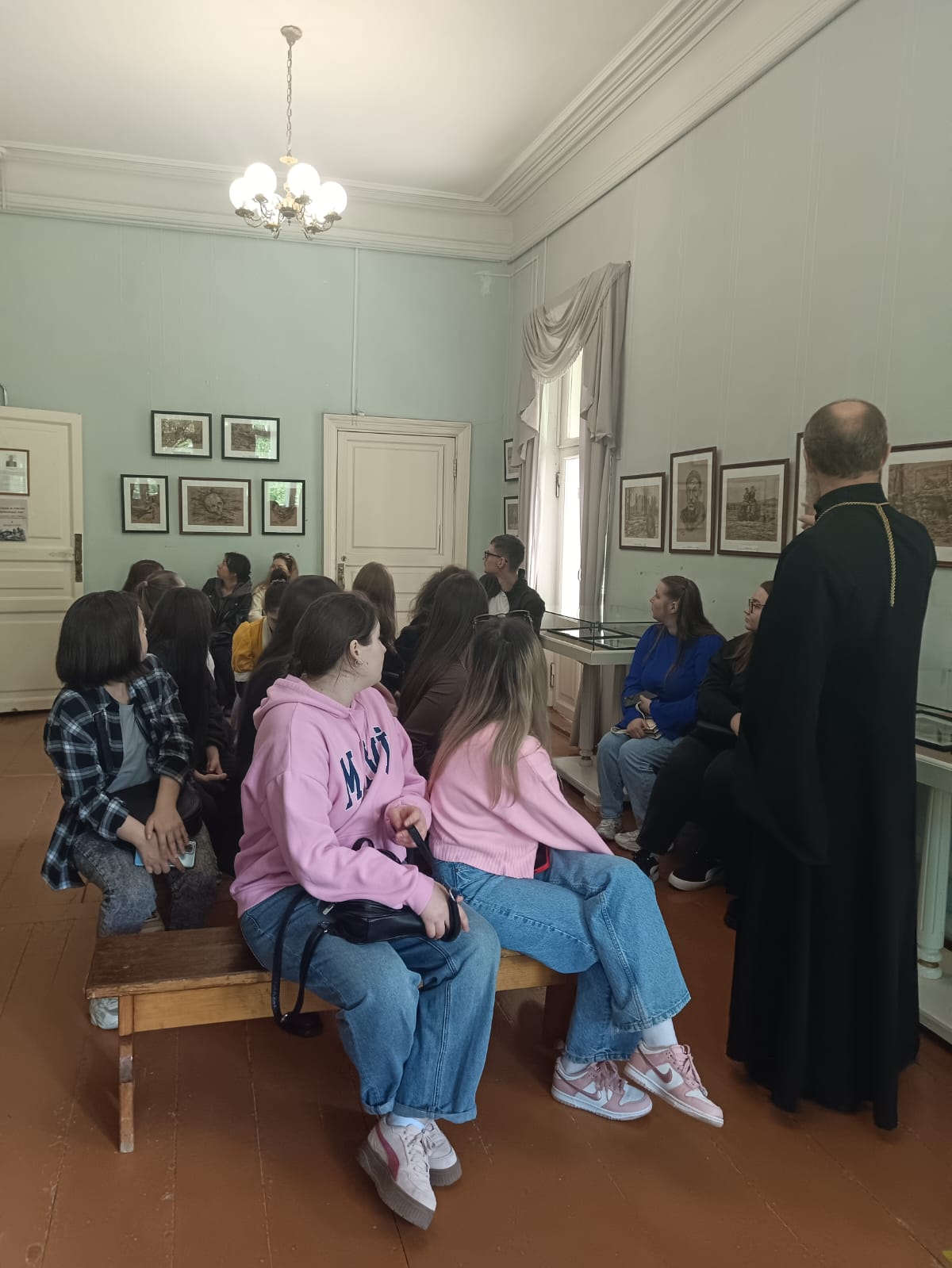 20 мая студенты 3 курса направления "Библиотечно-информационная деятельность" в рамках работы студенческого объединения "Аналитик" и студенты направления "Право и правоохранительная деятельность" вместе с преподавателем Гильмияновой Риммой Аскаровной посетили дом-музей Аксакова, в котором прошла встреча с протоиереем Виктором Ивановым и с последующей экскурсией по дому-музею С.Т. Аксакова. Отец Виктор - очень разносторонняя личность: священник, художник, поэт, музыкант, настоятель Свято-Пантелеимоновского храма Уфимской епархии, организатор и руководитель православного военно-патриотического объединения «Александр Невский». Протоиерей с удовольствием рассказал студентам о значимости профессии педагога: его задача задать направление своему ученику, суметь заинтриговать его в получении новых знаний. Отец Виктор поделился своим опытом в различных областях: изобразительном искусстве, религии, мастерстве самообороны и военной службе. Он также рассказал свои бытовые истории и активно задействовал аудиторию, отвечая на вопросы. Важно подчеркнуть, что встреча носила лёгкий, дружелюбный и весёлый характер. По окончании беседы студентам была предложена экскурсия по дому-музею С.Т. Аксакова. Это старинный особняк, родовое поместье русского писателя и общественного деятеля Сергея Тимофеевича Аксакова. Дом является объектом культурного наследия России регионального значения и филиалом Национального музея Республики Башкортостан. Особняк был построен в конце XVIII века из уральской лиственницы. В 1795–1797 годах в доме проживала семья Сергея Тимофеевича Аксакова. По книге писателя «Детские годы Багрова-внука» дом был известен как «родовое гнездо».
