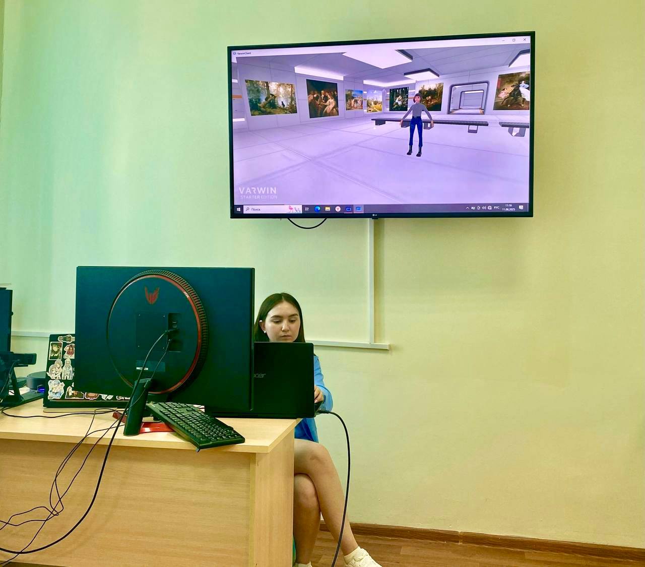 Участники мастер-классов – студенты четвертого курса направления 44.03.05 Педагогическое образование (с двумя профилями подготовки), направленность (профиль) «Обществознание и английский язык» и «История и обществознание» самостоятельно разработали и представили дидактические материалы к урокам обществознания с применением VR технологий. Формат разработок включал проекты в виртуальном пространстве (3D), которые могут быть использованы как в очках виртуальной реальности, так и на обычном ПК. Наставником в разработке материалов стал младший научный сотрудник временного творческого коллектива по выполнению НИР Глеб Михайлович Луц. Экспертами представленных разработок выступили директор Института, кандидат педагогических наук Оксана Алексеевна Шамигулова и преподаватель кафедры обществознания, права и социального управления Даниил Андреевич Горсков.