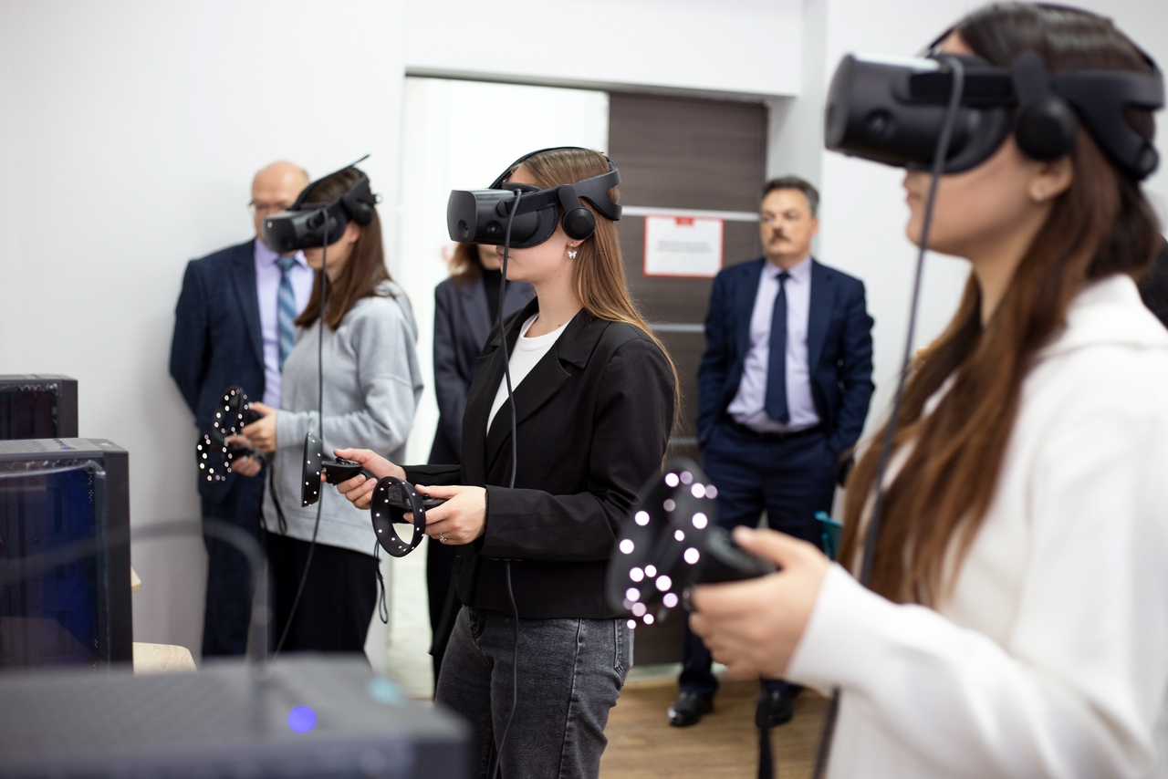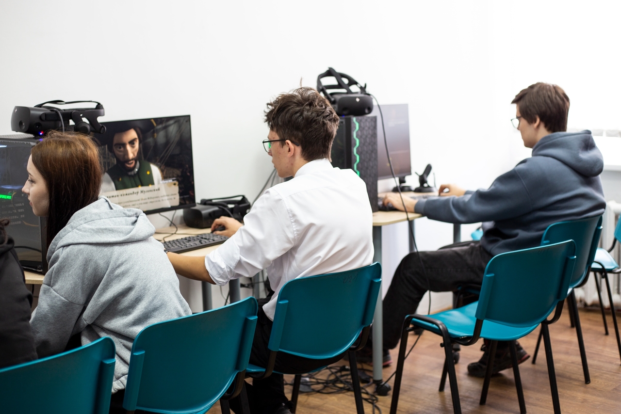 Магистрант ИИСПГО Глеб Луц рассказал школьникам о виртуальном археологическом музее, созданном студентами и преподавателями института при помощи гранта Росмолодежи. Благодаря специальной программе и VR-очкам ребята смогли побывать на археологических раскопках, которые проходили на улице Октябрьской революции, прямо рядом с университетским корпусом, и посмотреть на найденные артефакты.