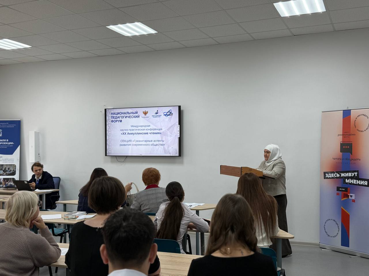 21 ноября 2025 на базе Института исторического, правового и социально-гуманитарного образования состоялась работа секции «Гуманитарные аспекты развития современного общества» в рамках Международной научно-практической конференции «XХ Акмуллинские чтения». Целью проведения стала: обмен опытом, консолидация научного и педагогического сообщества в решении актуальных проблем гуманитарного образования и просвещения в условиях мультикультурности, а также вопросов изучения, сохранения, развития национальных культур. В обсуждении указанного круга проблем приняла участие почти сотня ученых, преподавателей, учителей, аспирантов, магистрантов, студентов, работников сферы образования, науки и искусства: