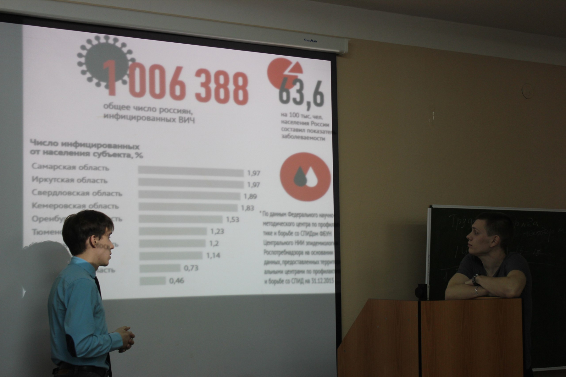 И поэтому 1 декабря в Институте исторического и правового образования состоялось собрание, посвященное тематике этого важнейшего события. Первокурсники слушали выступления студентов старших курсов о неизлечимой болезни и ее смертельных последствиях. Также ребята рассказали о причинах заболевания ВИЧ-инфекции и о правильной жизненной позиции. Фильм «Порыв» Дмитрия Никифорова заставил всех присутствующих задуматься о серьезности данной проблемы.