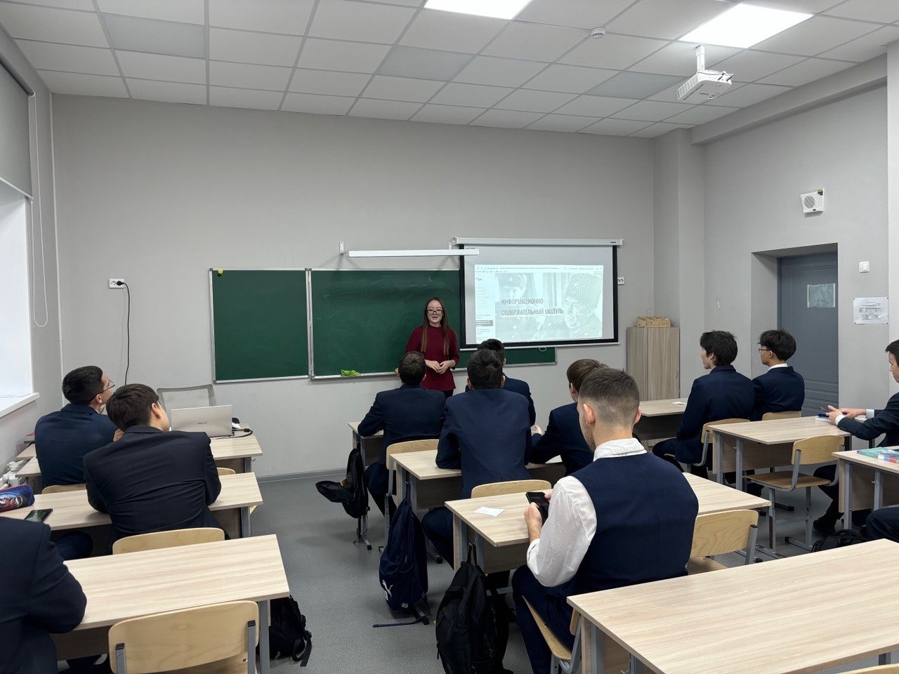 3 – 5 декабря в рамках прохождения педагогической практики студенты группы ПОИС_ОБЩ-51-21 Института исторического, правового и социально-гуманитарного образования Башкирского государственного педагогического университета им. М. Акмуллы проводят серию профориентационных мероприятий для учащихся общеобразовательных школ. Алсу Феткулова выступила перед учащимися 10-х классов Республиканского инженерного лицея-интернета (ГБОУ РИЛИ). Алсу подробно рассказала о жизни вуза, сделав акцент на возможностях, доступных студентам с первого курса. Старшеклассники познакомились с основными направлениями подготовки. Особое внимание было уделено системе олимпиад, которые не только дают шанс на льготное поступление, но и служат отличным трамплином для личностного и интеллектуального роста.