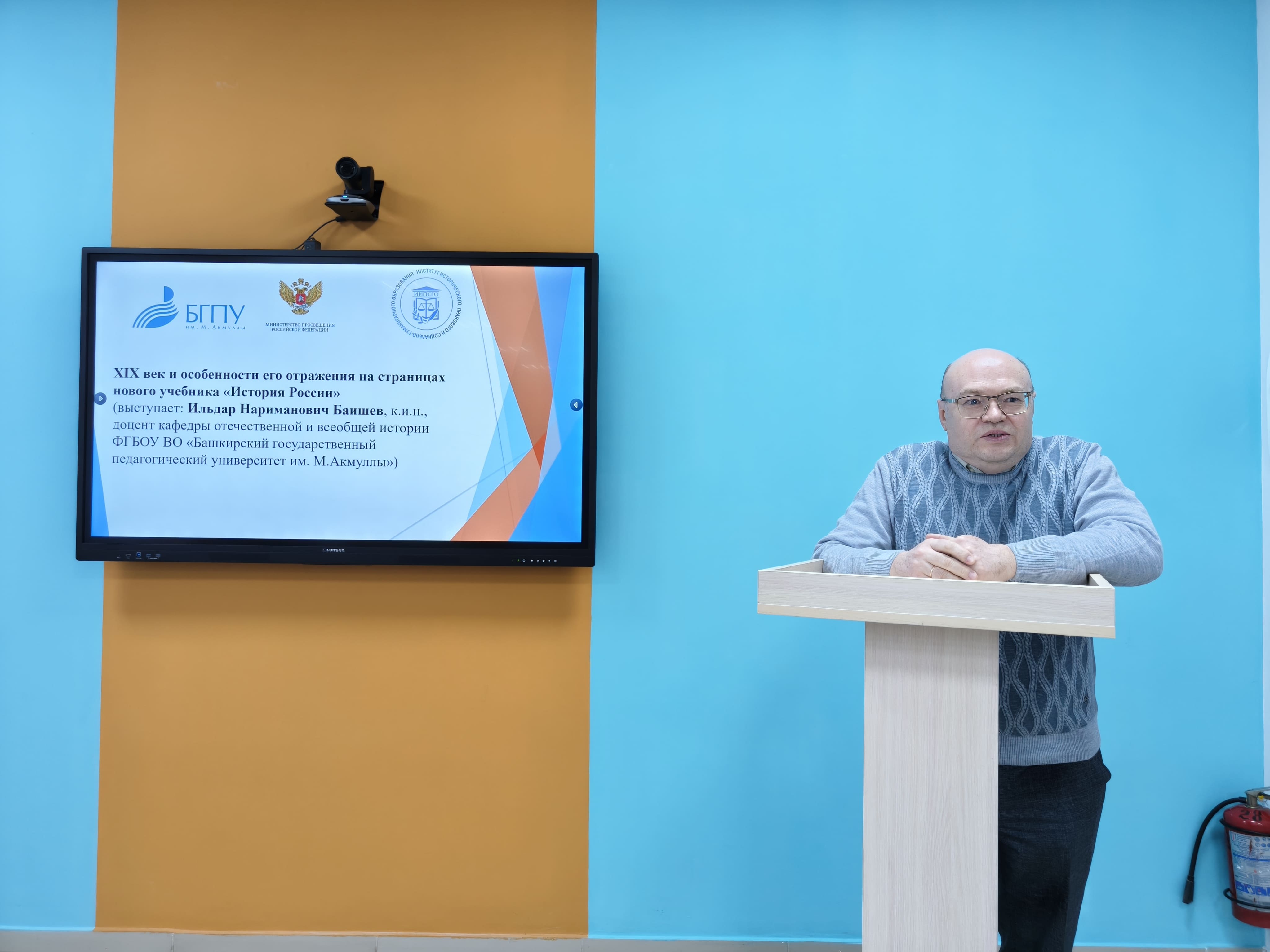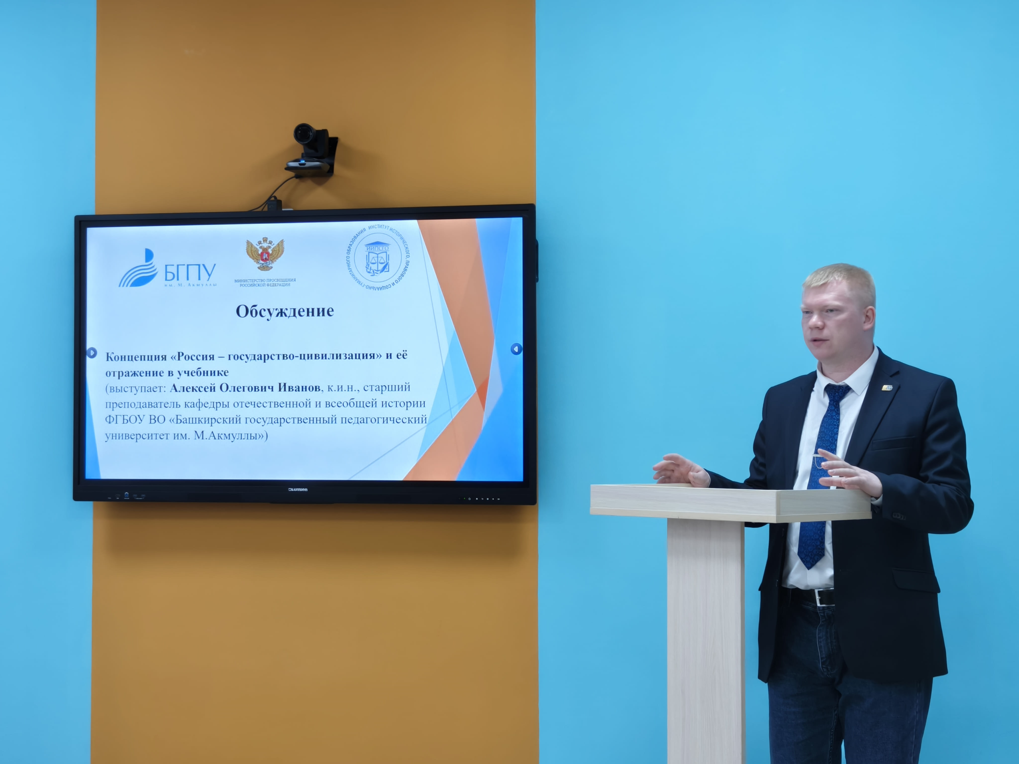 На обсуждение было вынесено три узловых вопроса отечественной истории. По первому вопросу с докладом на тему: «Концепция «Россия – государство-цивилизация» и её отражение в учебнике» выступил Алексей Олегович Иванов, кандидат исторических наук, старший преподаватель кафедры отечественной и всеобщей истории, который отметил важность данной концепции в контексте необходимости понимания исторического пути страны, а также для решения современных проблем, с которыми сталкивается наша страна. Второй вопрос «XIX век и особенности его отражения на страницах нового учебника «История России» осветил Ильдар Нариманович Баишев, кандидат исторических наук, доцент кафедры отечественной и всеобщей истории, акцентировавший внимание на том, что многие аспекты истории этого периода описаны не достаточно подробно, например, события Крымской войны 1853-1856 гг. Третий вопрос, связанный с «Дискуссиями об образовании Древнерусского государства и их отражением на страницах учебника под редакцией Юрия Петрова» изучила Алия Усмановна Гатаулина, председатель Студенческого научного общества ИИПСГО, студентка 4 курса. В своём выступлении она отметила, что данной теме в учебнике уделено 9 страниц, которые довольно подробно раскрывают различные стороны особенностей формирования Древнерусского государства. На страницах учебника имеются ссылки на соответствующие исторические источники, а также представлен анализ основных проблемных аспектов, которым часто не уделяется должное внимание, например, истоки названия государства, понятие государственности и процесса ее становления. В заключении участники отметили важность обсуждения учебника в формате дискуссии, поскольку это необходимо для совершенствования преподавания истории в вузах. Мероприятие было организовано Алексеем Олеговичем Ивановым совместно с активом Студенческого научного общества Института.