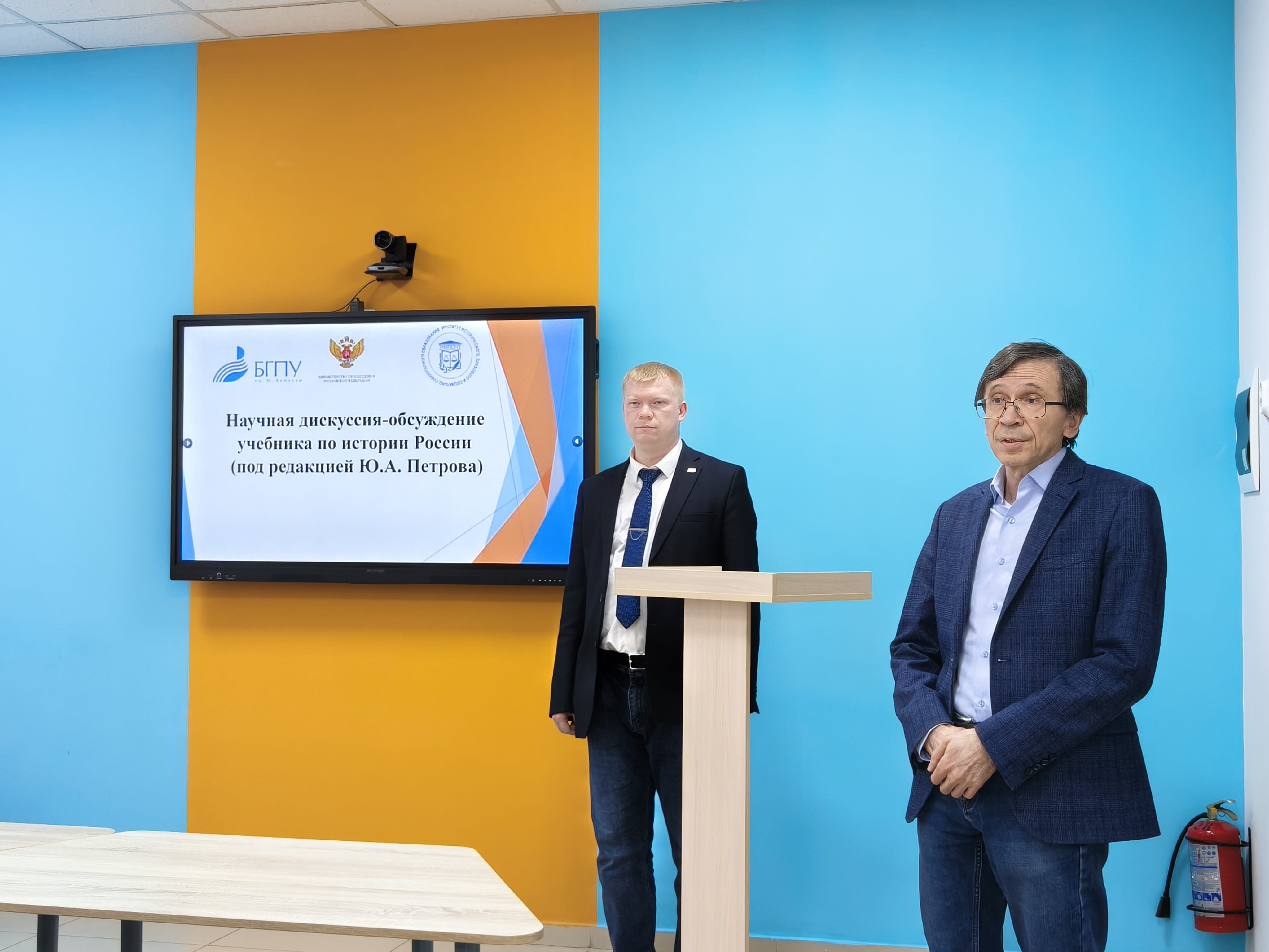 3 февраля состоялась научная дискуссия, в ходе которой участники обсудили учебник по истории России для неисторических специальностей и направлений подготовки под редакцией Юрия Александровича Петрова. С приветственным словом к участникам дискуссии обратился Рустам Закирович Алмаев, кандидат исторических наук, заведующий кафедрой отечественной и всеобщей истории.
