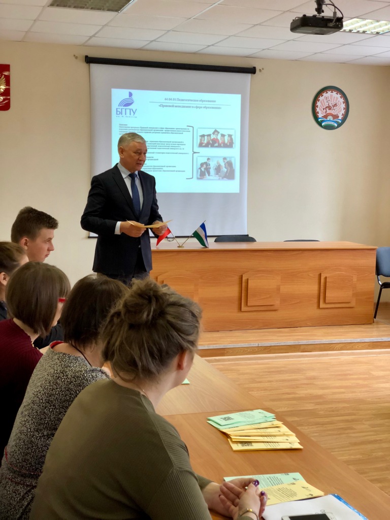 25 апреля 2018 года в рамках Дня магистратуры БГПУ им. М. Акмуллы на ИИПО состоялась презентация учителям и студентам выпускных курсов магистерских программ "Правовой менеджмент в сфере образования" и "Правовое образование". Руководитель - Ишкильдина Гульнара Рашитовна.