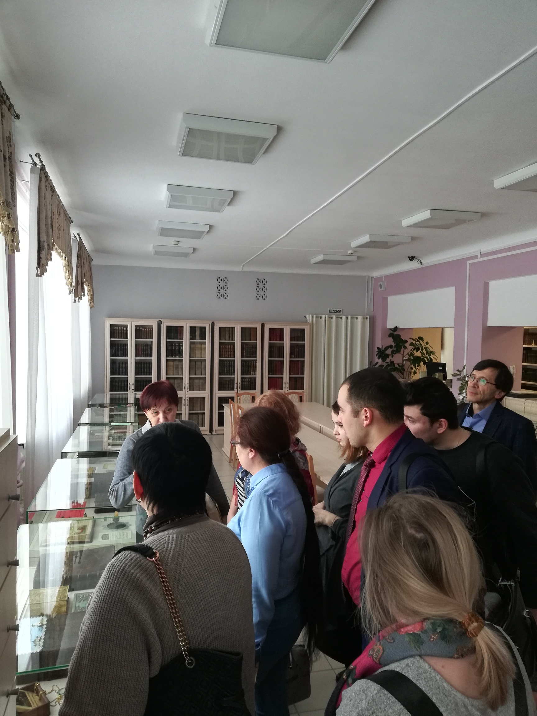 В первый день для студентов была организована экскурсия по книжным фондам библиотеки. Перед студентами стоит задача подбора материала к написанию курсовой и выпускной квалификационной работы. Они должны изучить и проанализировать исторические источники и литературу, информационные ресурсы библиотеки, продемонстрировать навыки проведения самостоятельных исследований по профилю профессиональной деятельности. Предстоит работа в отделах рукописей и редких книг, периодических изданий, краеведения.