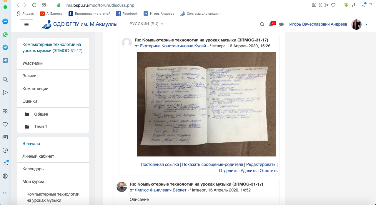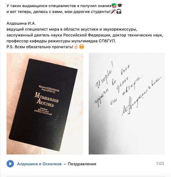 В период дистанционного обучения со студентами направления «Педагогическое образование» профиля «Компьютерные технологии в музыкальном образовании и искусстве» старший преподаватель кафедры музыкального и хореографического образования И.В. Андреев находит интересные формы обучения по изучению топовых мультитрековых секвенсоров PRO TOOLS, LOGIC PRO X, Steinberg Cubase, виртуальных приборов обработки звукового сигнала plug-in’s пакетов фирмы WAVS и Sonnox Oxford. Для проверки сформированных компетенций проводит тесты систем расстановки микрофонов и аппаратно-программных комплексов. Студенты изучают специальную научную литературу по вопросам организации концертных и студийных помещений, акустики, кабельной разводки и коммутации, внутристудийному мониторингу, мастерингу, а затем готовят подробное описание всего технического и технологического процесса.