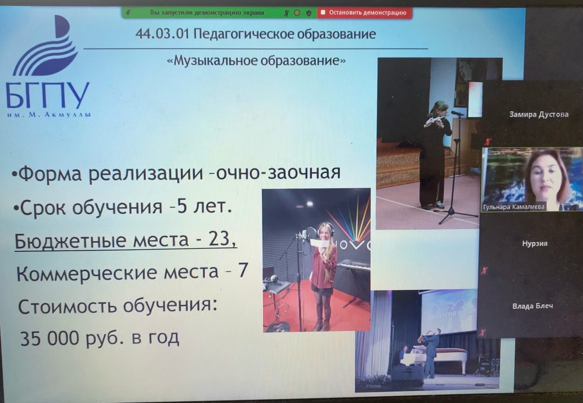 26 декабря 2020 года прошло дистанционное профориентационное мероприятие от кафедры музыкального и хореографического образования на платформе Zoom с учениками выпускных классов МАОУ "Центр образования №35", МБОУ Ордена дружбы народов гимназия № 3 им. А.М. Горького» г. Уфа