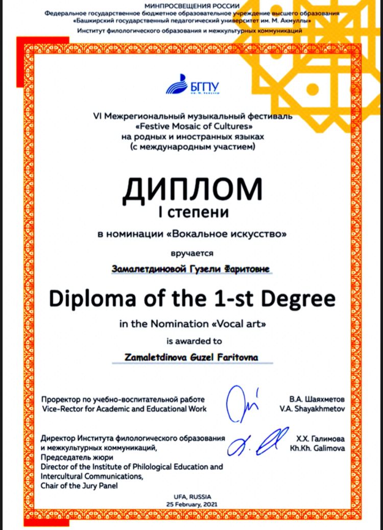 Замалетдинова Гузель - Лауреат I степени;