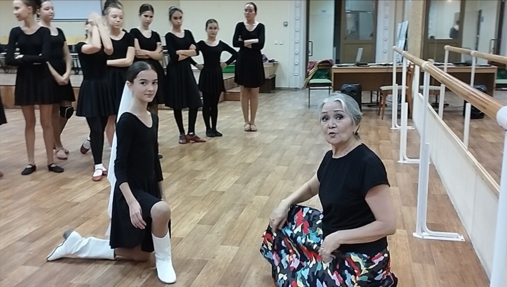 Зульфия Идрисовна рассказала о постановке нового хореографического номера, его сюжете и познакомила с музыкой. Начало танца положено: экспозиция и завязка номера произошли. После девочки ансамбля "ЭНЖЕ" показали свои танцевальные номера. Зульфия Идрисовна выразила восхищение и сделала определённые замечания и пожелания.