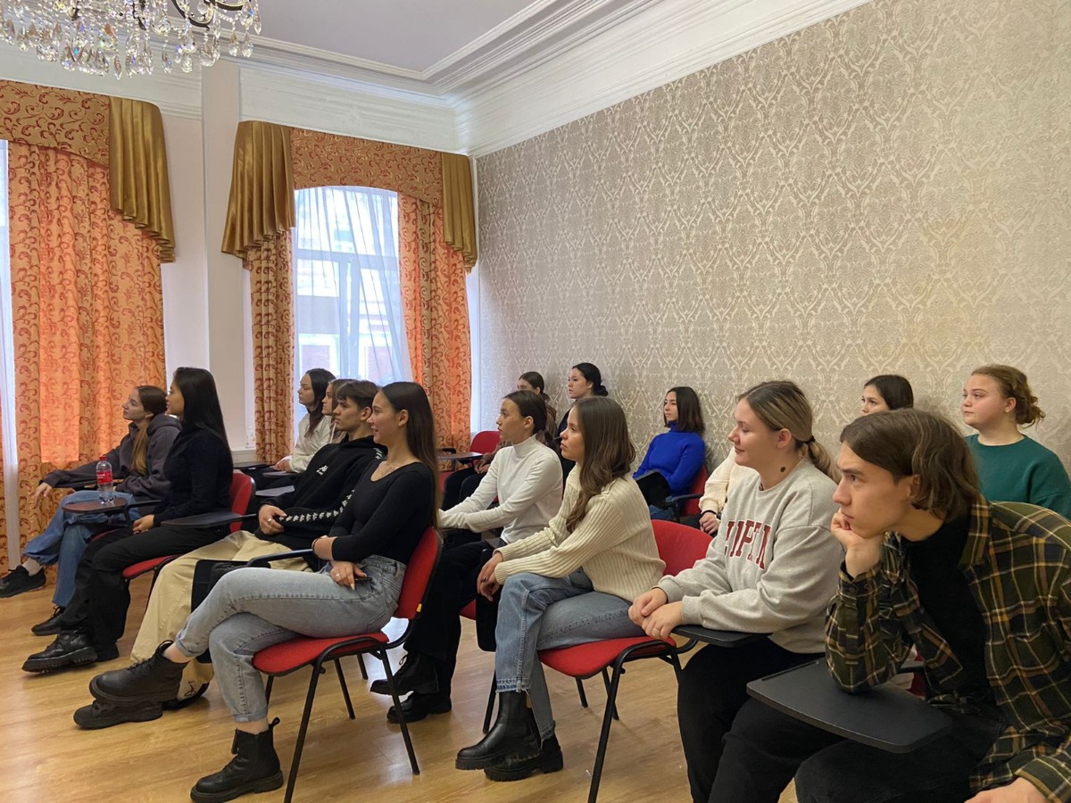 30 октября 2023 состоялась беседа в рамках тематического плана занятий "Разговоры о важном" со студентами 1 курса направления подготовки "Педагогическое образование", профиля "Художественное образование (хореография)" на тему "День народного единства" под руководством куратора, старшего преподавателя Муфтахутдиновой Ирины Александровны.
