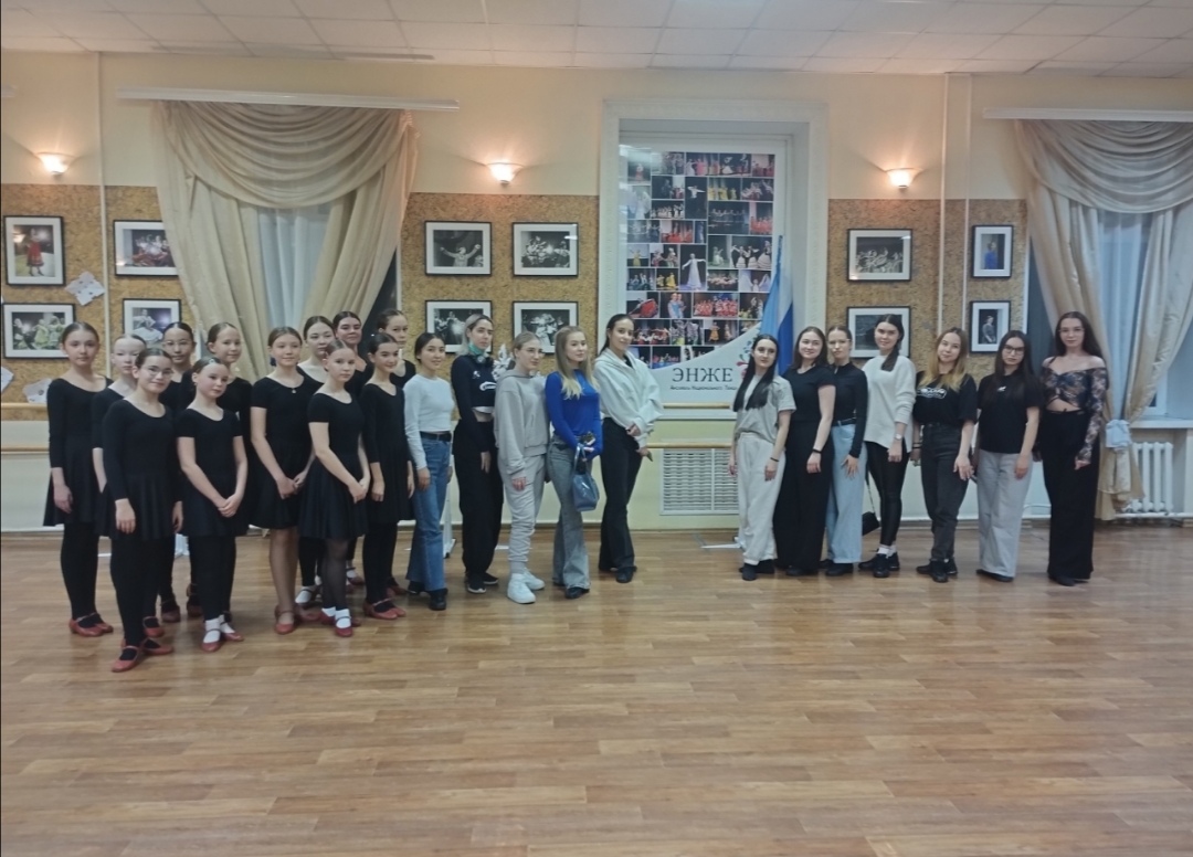 Студенты ознакомились с работой ансамбля, посмотрели уроки в разных возрастных группах, приняли активное участие в процессе работы на занятиях. Амина Галиаскарова презентовала научную работу по народному танцу, обсудив со студентами, что же такое народный танец. Аднабаева Вероника дала задуматься над идеей хореографического номера "Журавушка", представив его, Екатерина Киселёва и Нургалеева Вилена раскрыли образы в номерах " Подарок" и Татарочка".