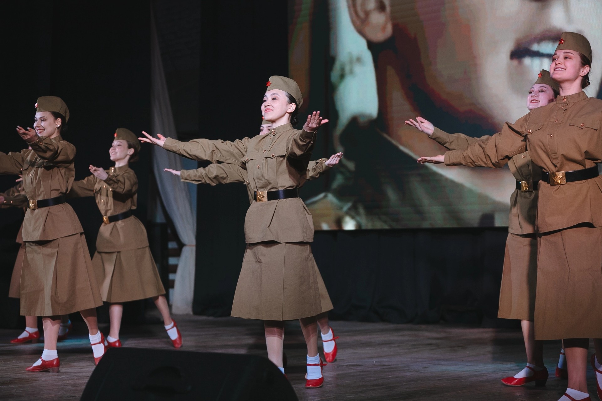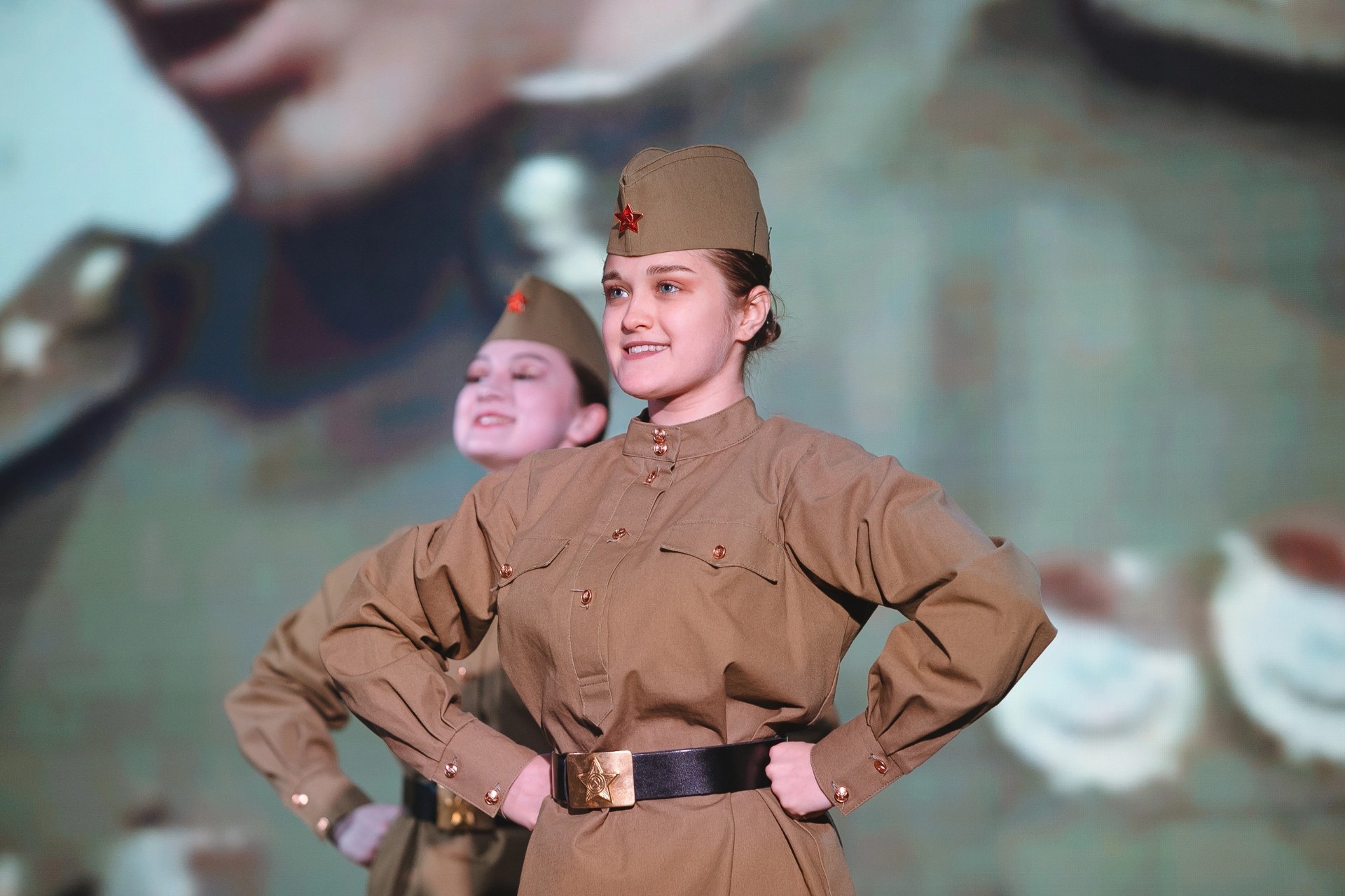 Весь концерт сопровождался уникальными кадрами военной хроники, посвященными подвигам педагогов в годы Великой Отечественной войны.