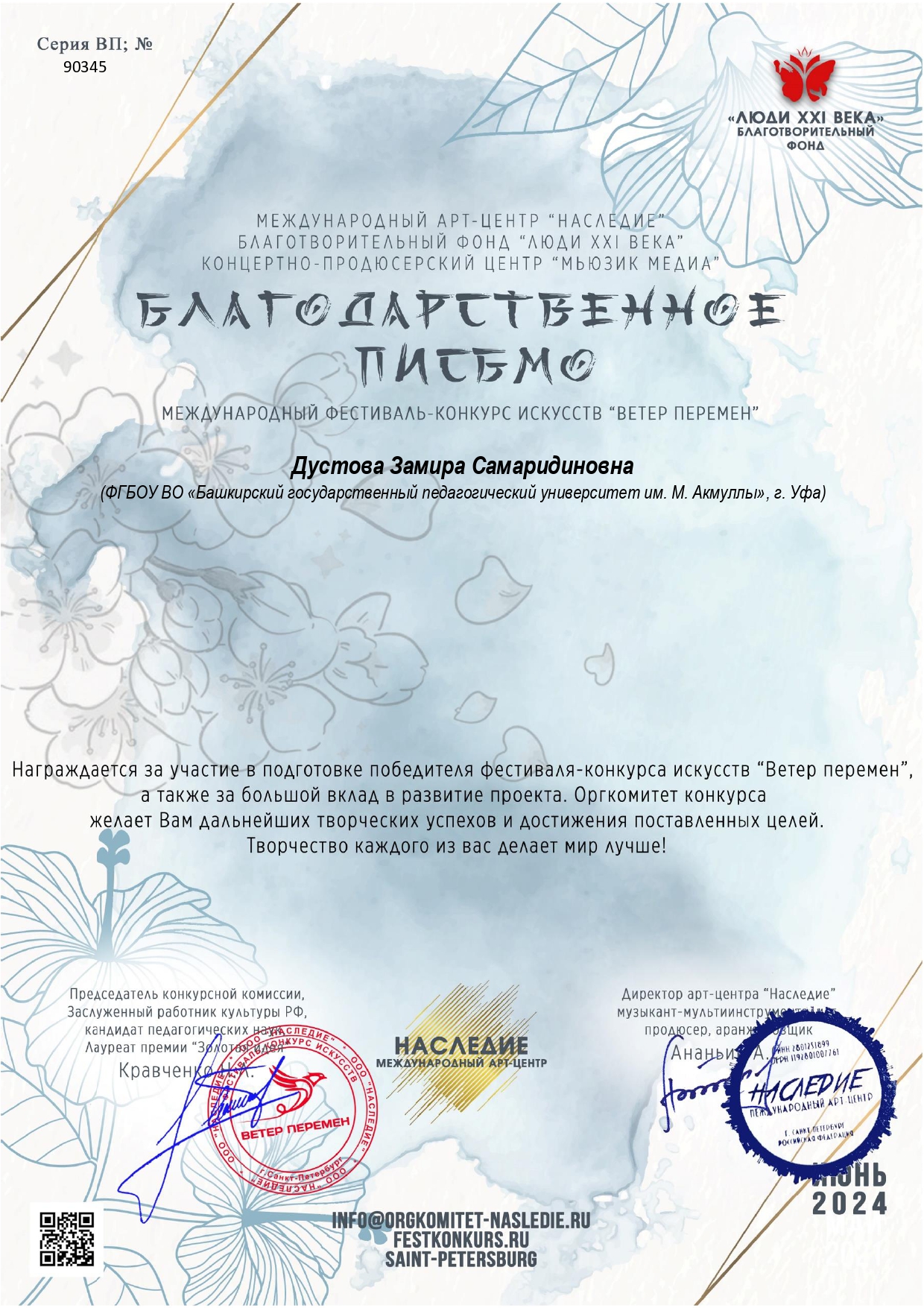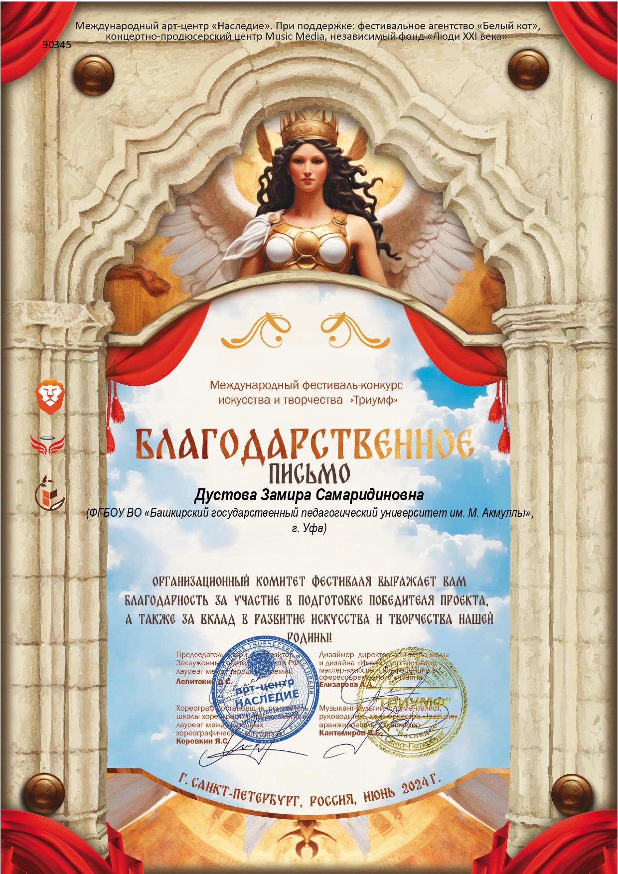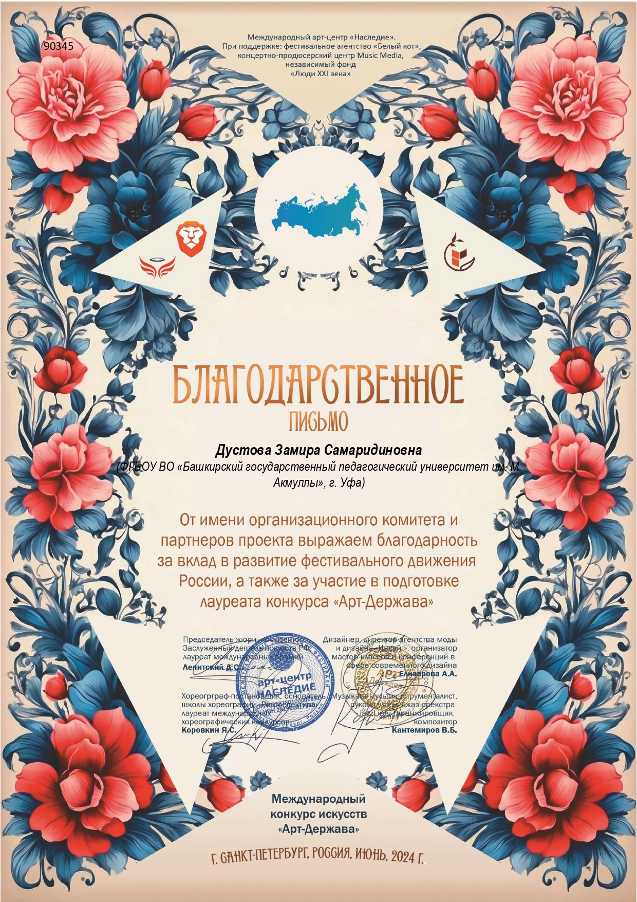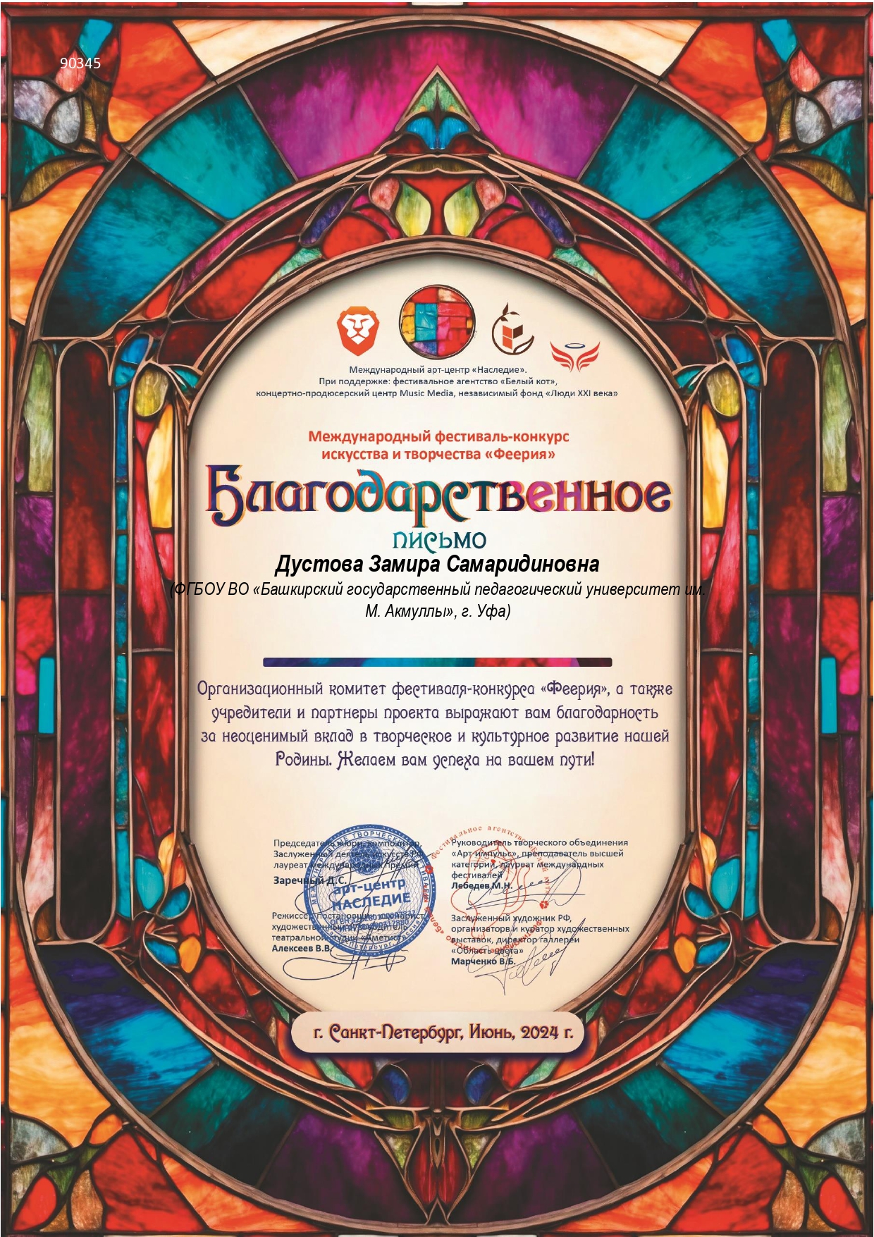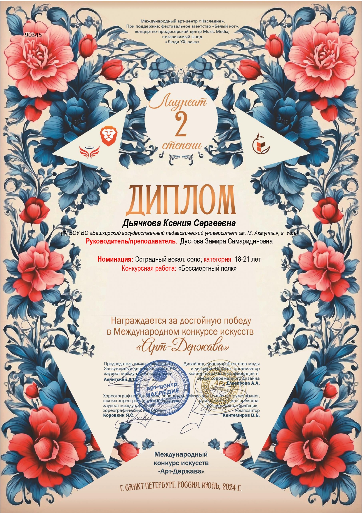 В июне 2024 года студентка кафедры музыкального и хореографического образования Акмуллинского университета Ксения Дьячкова вошла в число победителей сразу четырех Международных конкурсов: Международного конкурса искусств «арт Держава»Международного фестиваля-конкурса искусств и творчества «Триумф», Международного фестиваля-конкурса искусств и творчества "Феерия" и Международного фестиваля-конкурса искусств "Ветер перемен".
