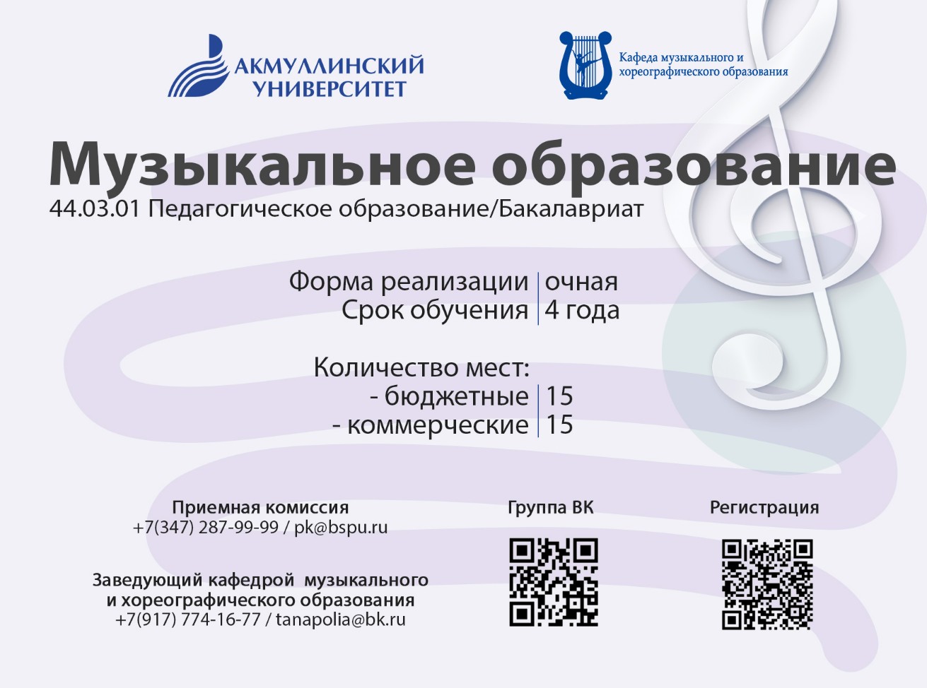 БГПУ им. М.Акмуллы (Уфа) приглашает абитуриентов на программу бакалавриата направления подготовки 44.03.01 «Педагогическое образование», профиль «Музыкальное образование» очной формы обучения!
