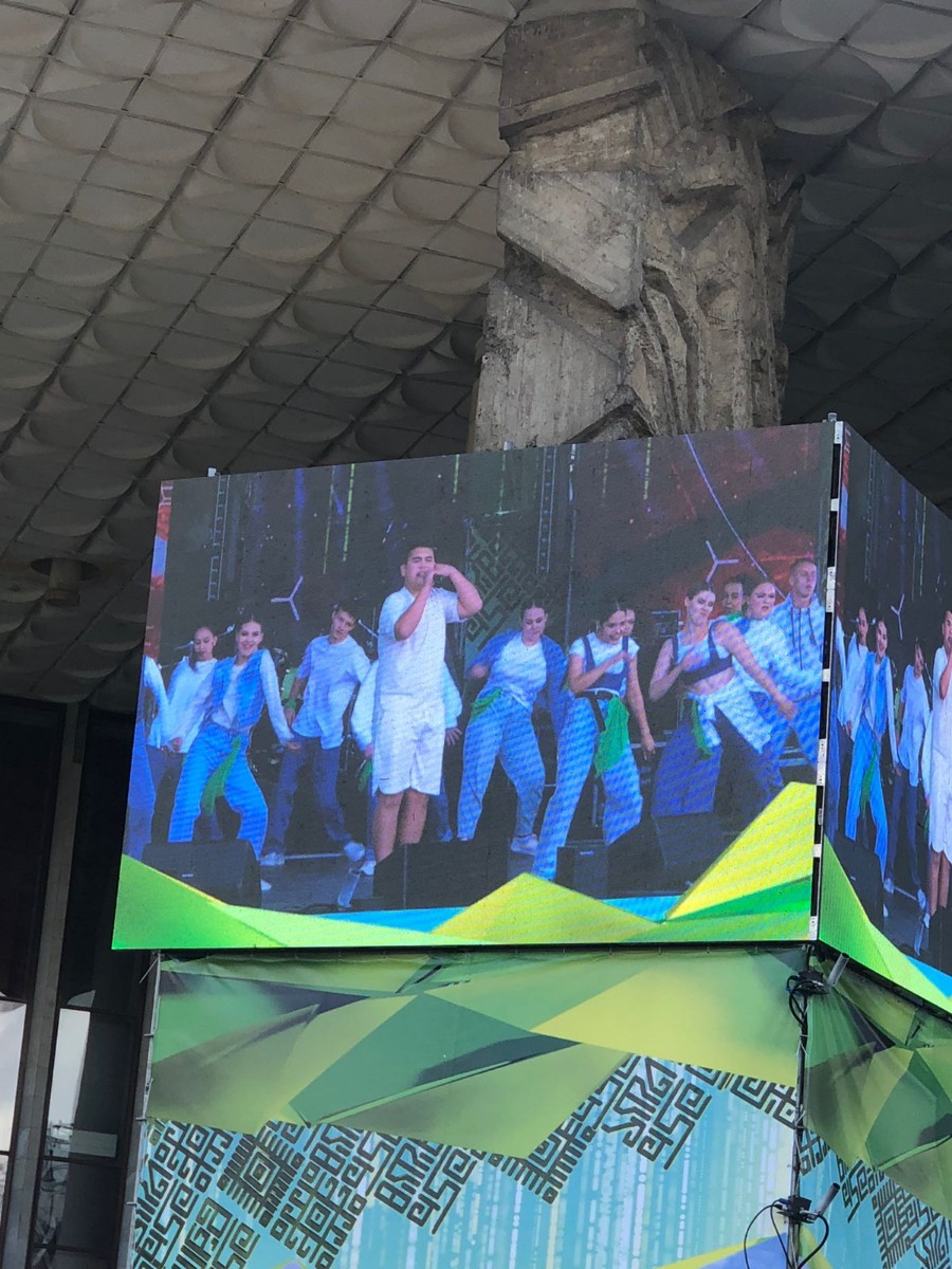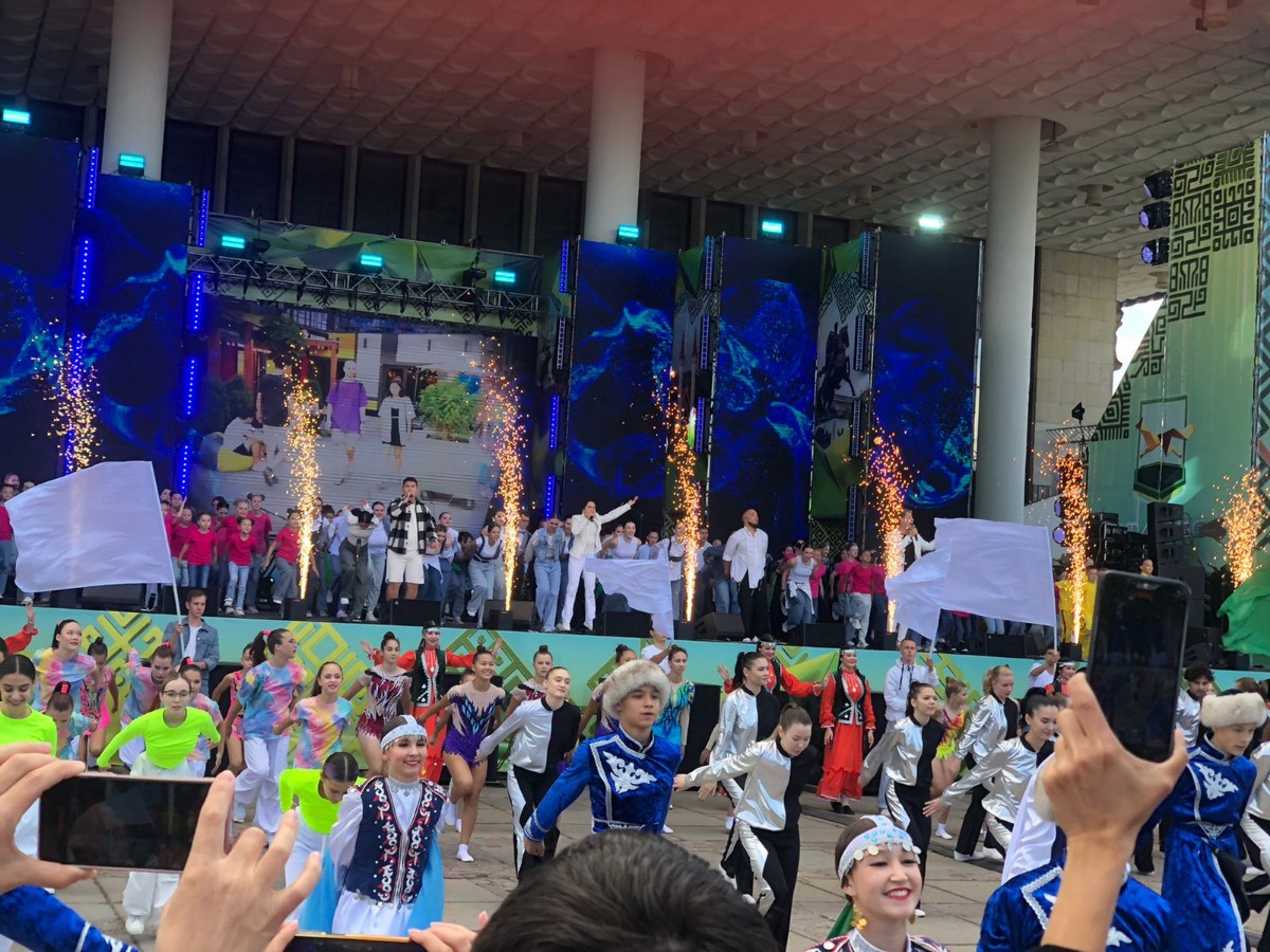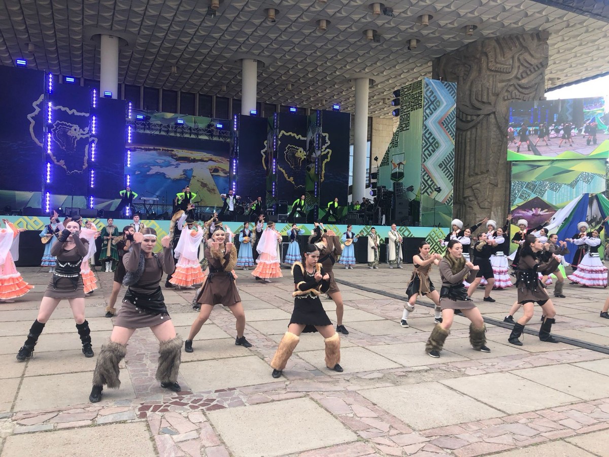 На площади перед Русским драматическим театром в рамках праздничной программы выступили Народный коллектив Хор "Кантанте" под руководством к. п. н., доцента Каримовой Л. Н., студенческое танцевальное объединение "Движение" под руководством преподавателей Салмина А. И. и Хайрутдиновой К. Р., студент Айтуган Айткулов под руководством доцента Дустовой З. С.