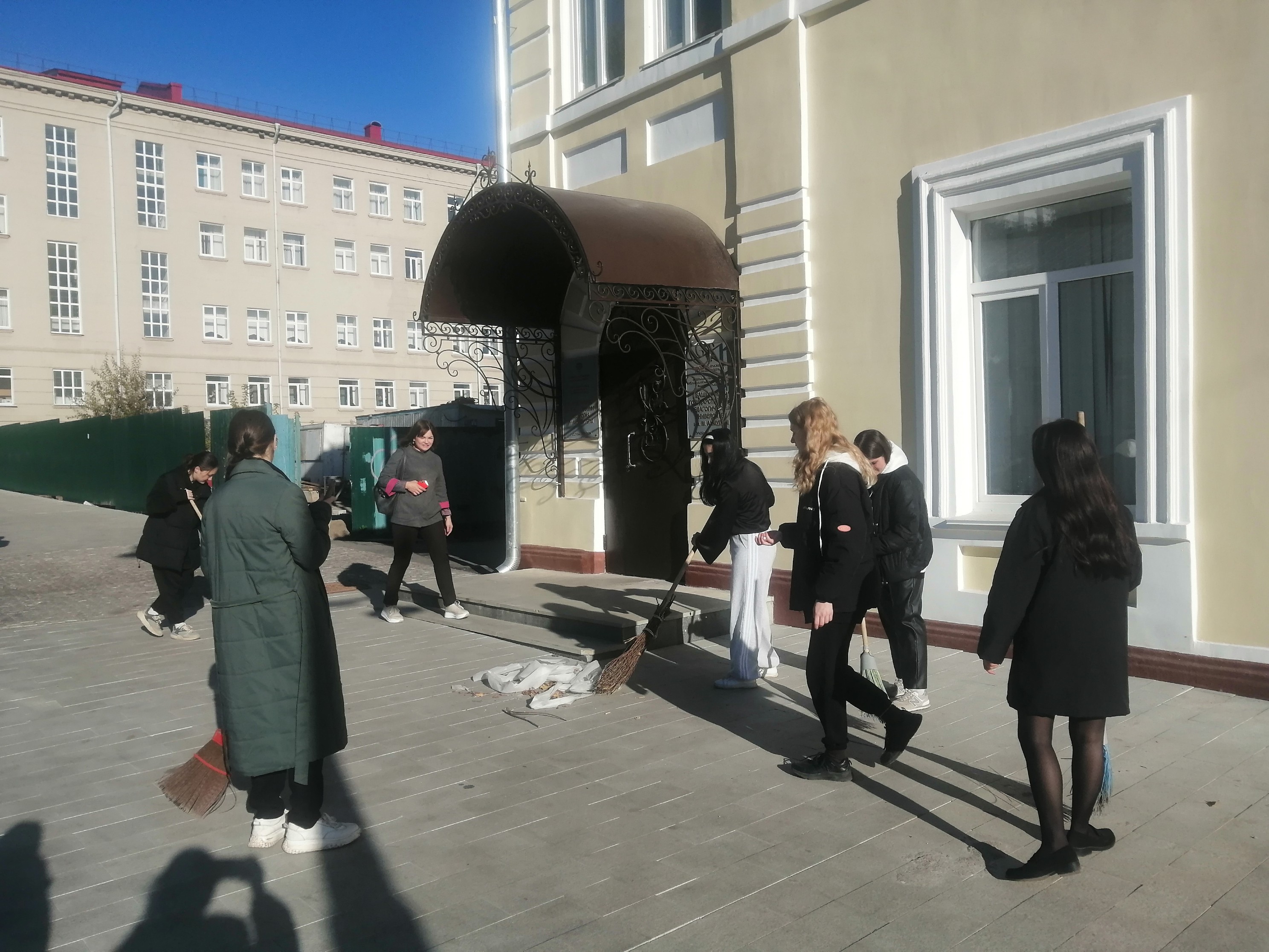 Студенты привели в порядок территорию перед 7 корпусом.