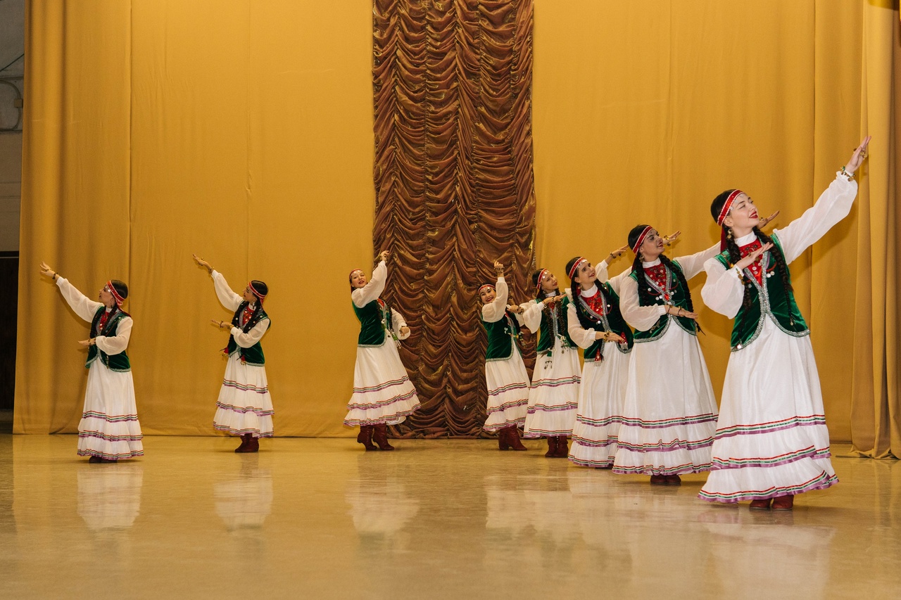 Программа включала танцы разных народов, проживающих в Башкортостане, такие как «Я посеяла ленок» (русский), «Кивуха» (белорусский), «Девчата» (мордовский), «Шашку бери!» (казачий), татарский танец с лаптями и башкирские танцы: «Ай людер», «Озорная внучка», «Мой подарок» и «Аулак».