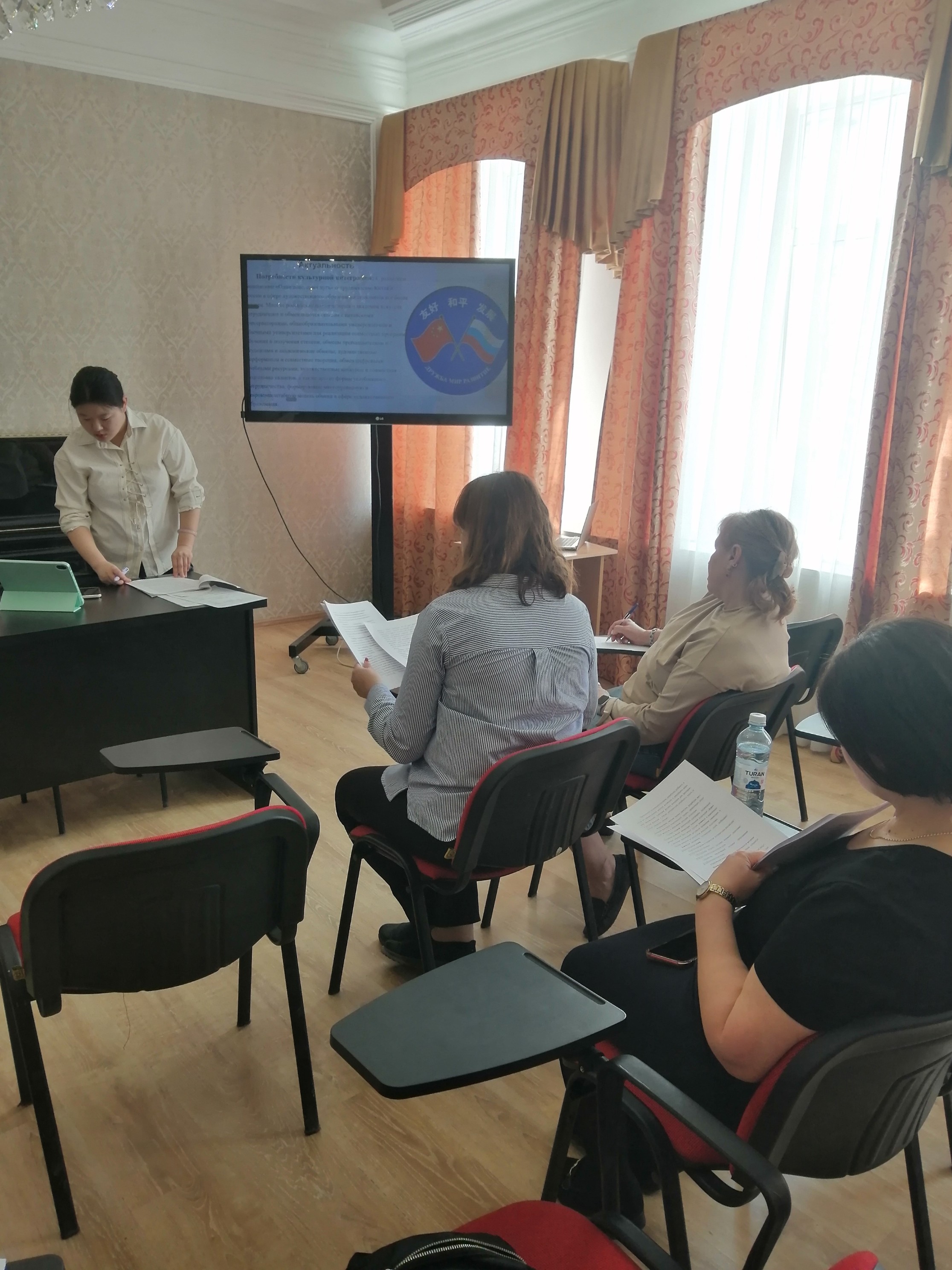 Аспирантка представила свои результаты разработки за первый год обучения, ответила на вопросы экспертов кафедры по теме исследования, связанной с развитием навыков обучения русской вокальной музыке студентов педагогических колледжей Китая.